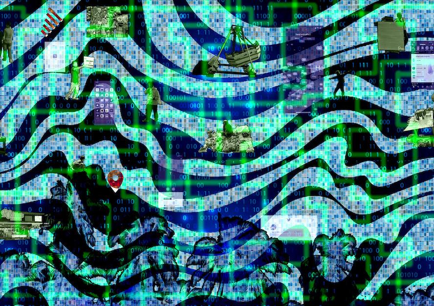 These layers intermingle to disrupt and reconstitute themselves into new layers and ecotones over time. The three stratums are seen as an ecological landscape, the landscape of economic order and the stratum of digital technologies - The Cloud.