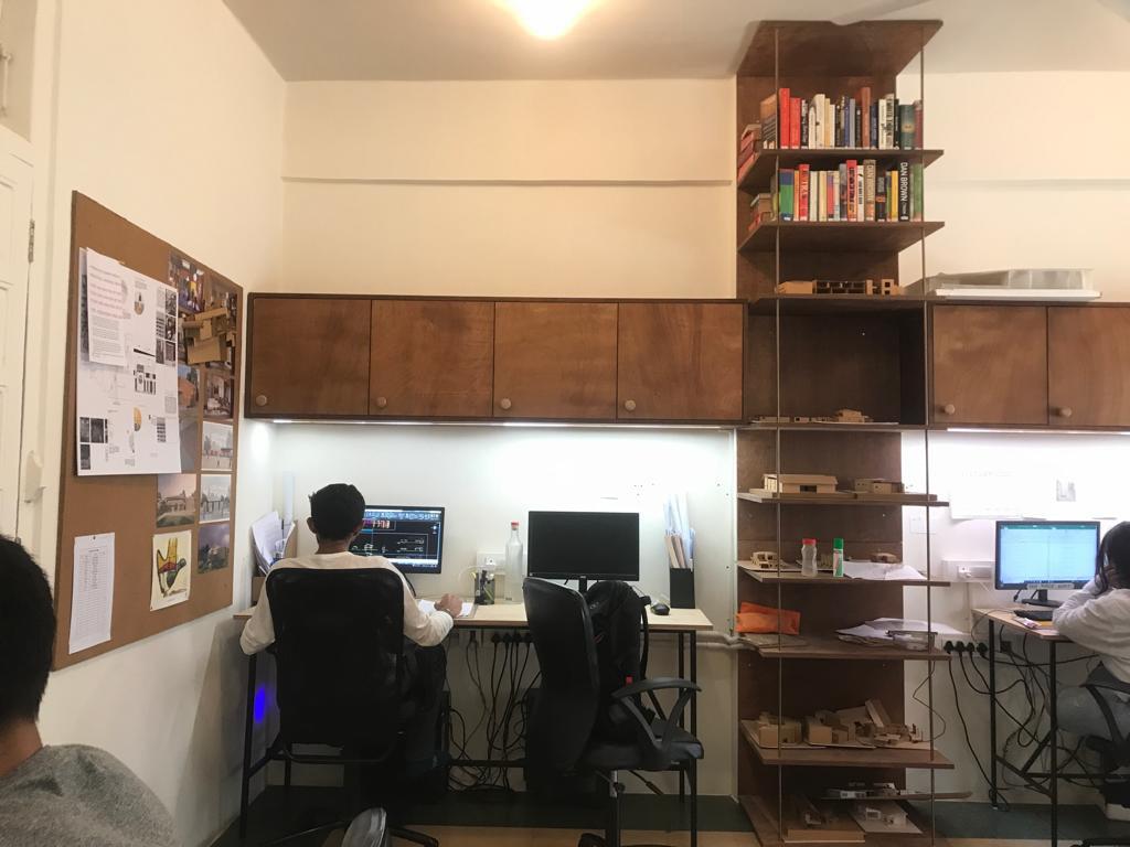 The office space is on the 6th floor of Museum of Solutions. The space will be used for Art India. The various interlinked programmes such as artists residencies, library, discussion spaces, conference, editor’s office etc demanded a free flow between them. Thus, Library acts as a spine to inter-connect these spaces.