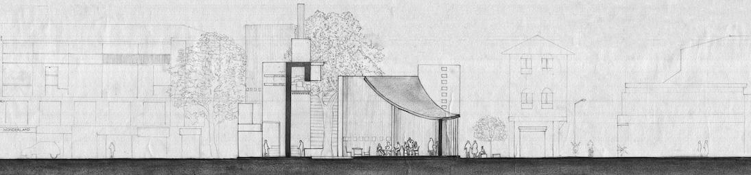 Bringing the structures together to ACT AS ONE but the idea of human percolation is lost and building acts as barrier between the site and Garden