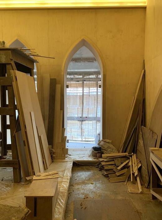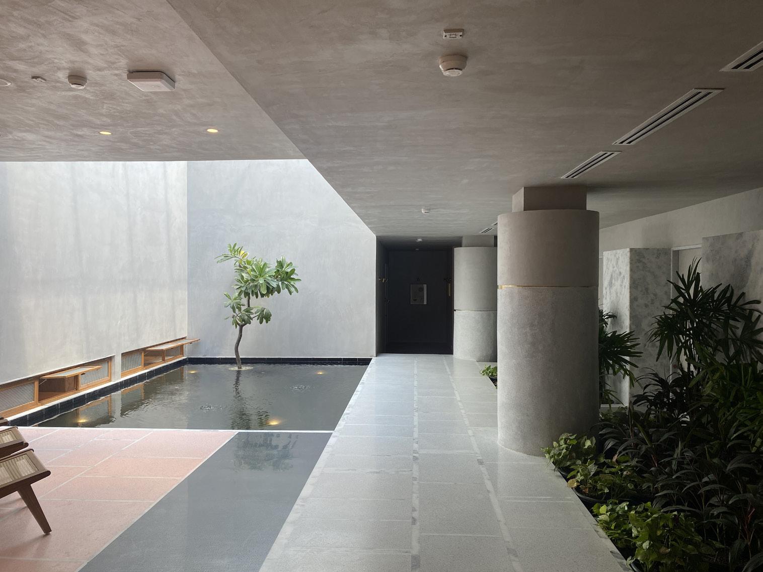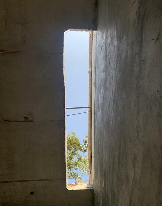 A 2 bhk apartment along with a kitchen, a hall cumm office and balconies on two sides. The openings were all arches, with 12 ft high ceilings.