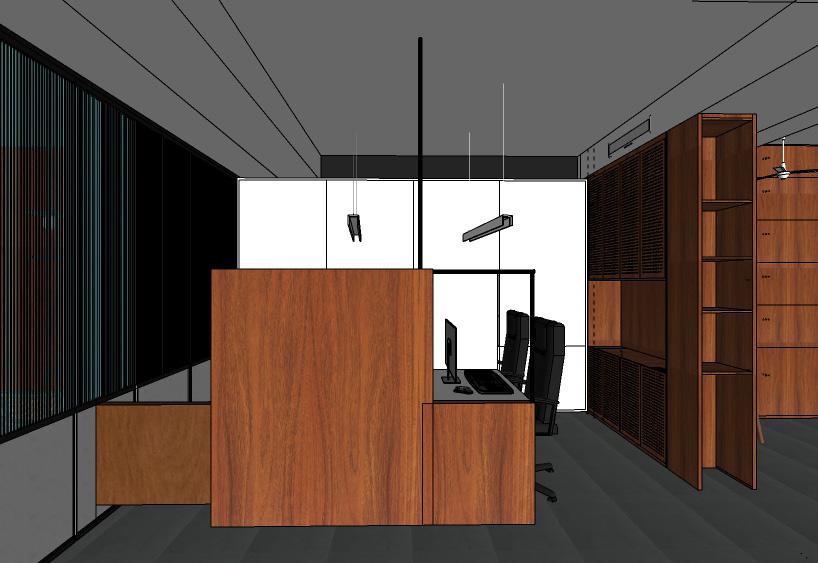 The office space for a swimming pool consultant comprises of a conference room, a reception, owner’s cabin, workstation for 4, and an eengineers desk . The idea behind the design was to have storage units as partitions between spaces.