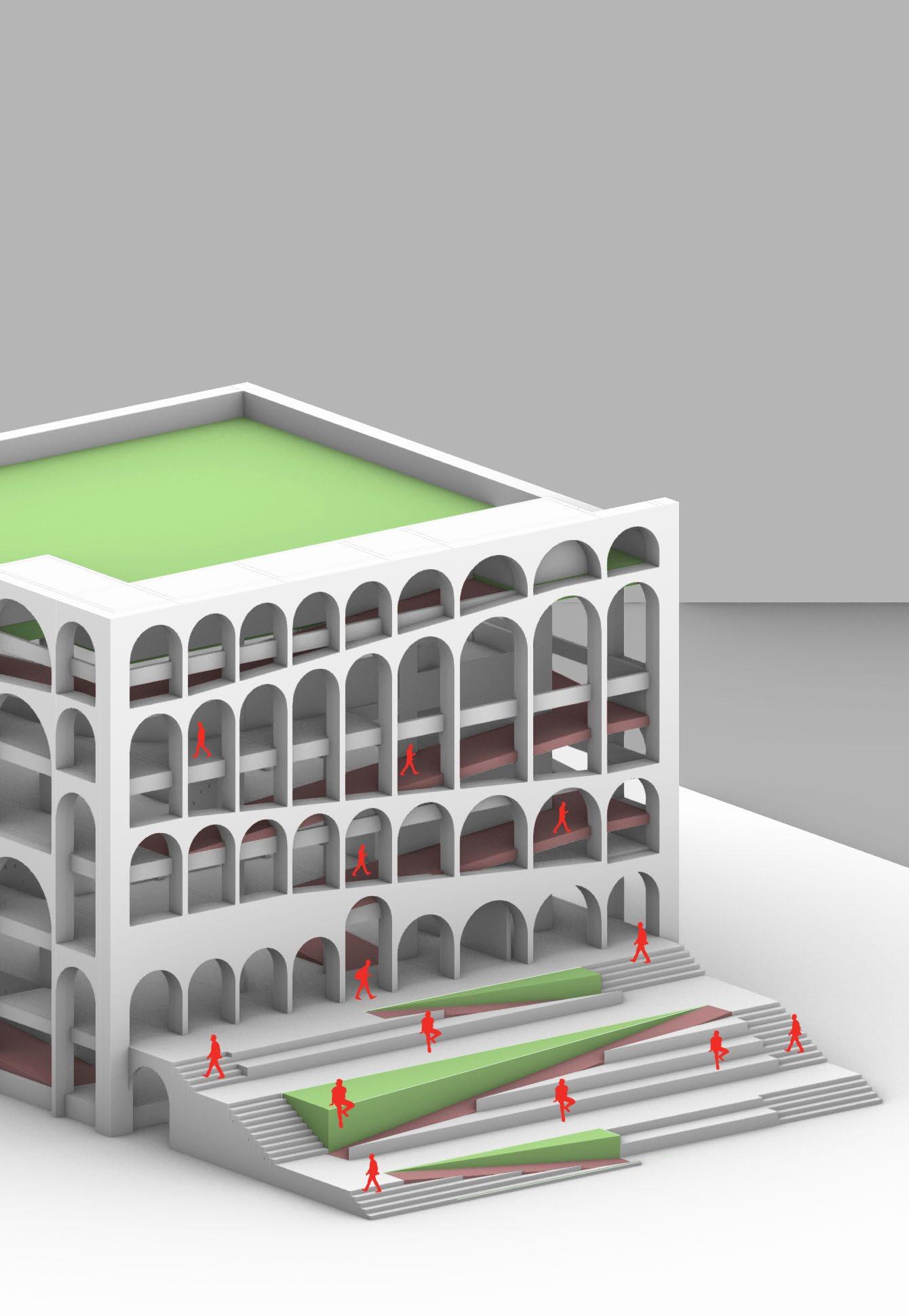 The square building is a modern masterpiece, designed with a unique combination of strength and beauty. It features concrete arches that surround the vertical elements, creating a stunning visual effect. The arches provide a sense of security and solidity, while the vertical elements add elegance and sophistication to the building’s design.