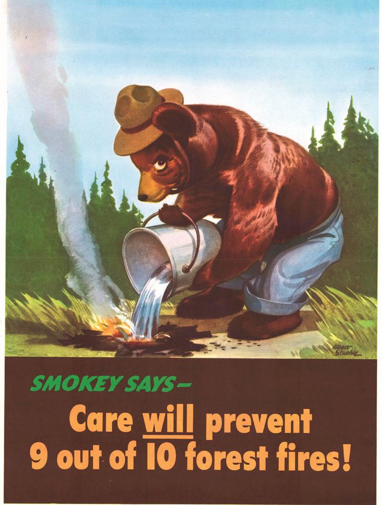 [In 1944, Albert] Staehle created the first poster of a cartoonish bear pouring water on a campfire. The Forest Service named the character after a former firefighting legend, New York assistant fire chief Smokey Joe Martin.