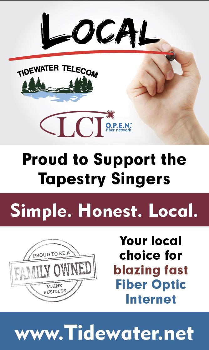 Advertising in the Tapestry Singers program is a great way to support our community and benefit your business at the same time. When you advertise with us by the fall deadline, your ad will be featured in our December and June programs—two concerts each means four different audiences. We draw an audience from the entire mid-coast area and beyond. TapestrySingersMaine.org/advertise