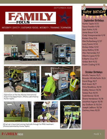 INTEGRITY | SAFETY | CUSTOMER FOCUS | INTENSITY | TRAINING | TEAMWORK