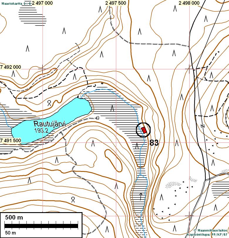 Kartta: Maastokarttalehdennumero.KKJ2jaKKJ3koordinaatit10mtarkkuudella(±5m), arvioituz-koordinaattisekäsenarvioitutarkkuus.