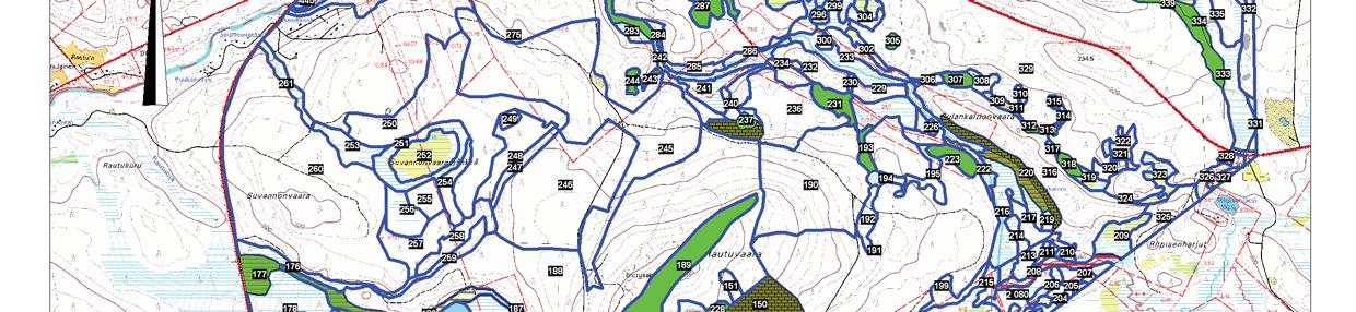 6.2SUOJELTU LAJISTO ......................................................................................................................... 30 6.2.1Uhanalaiset lajit ........................................................................................................................ 30 6.2.2Alueellisesti uhanalaiset lajit ..................................................................................................... 31 6.2.3Rauhoitetut lajit ......................................................................................................................... 31 6.2.4Suomessa esiintyvät luontodirektiivin II, IV ja V – liitteen lajit ................................................ 32 6.2.5Suomen vastuulajit ..................................................................................................................... 32 6.2.6Muut alueella harvalukuiset tai harvinaiset kasviesiintymät ..................................................... 33 7LÄHIALUEEN SUOJELUALUEET .................................................................................................. 34 7.1NATURA 2000-VERKOSTOON KUULUVAT ALUEET ........................................................................ 34 7.1.1Niesaselkä (FI 130 0706) ........................................................................................................... 34 7.1.2Teuravuoma-Kivijärvenvuoma (FI 130 0701) ........................................................................... 35 7.1.3Tornionjoen-Muonionjoen vesistöalue (FI 130 1912) ............................................................... 35 7.1.4Ylläs-Aakenus (FI 1300618) ...................................................................................................... 36 7.2VANHOJEN METSIEN SUOJELUOHJELMA......................................................................................... 37 7.2.1Kiuasselkä (AMO 120255)......................................................................................................... 37 7.2.2Pahtajärvi (AMO 120253) ......................................................................................................... 38 7.3HARJUJENSUOJELUOHJELMA .......................................................................................................... 38 7.3.1Pakasaivon harjujensuojelualue (HSO 120148) .......................................................................38 7.4LEHTOJENSUOJELUALUEET ............................................................................................................ 38 7.4.1Mustavuoman lehtojensuojelualue (LHA 120041) .................................................................... 38 8YHTEENVETO .................................................................................................................................... 39 9SANASTO ............................................................................................................................................. 41 10KIRJALLISUUS ................................................................................................................................... 45 LIITTEET nro mittakaava tulostuskoko Liite 1. Selvitysalueiden sijainnit 5201a-1 1:250 000 A4 Liite 2. Äkäsjokisuun selvitysalueen rajaus 5201a-2 1:30 000 A4 Liite 3. Rautuvaaran selvitysalueen rajaus 5200ab-1 1:40 000 A4 Liite 4. Hannukaisen selvitysalueen rajaus 5199a-1 1:50 000 A4 Liite 5. Äkäsjokisuun kuviokartta 5201a-3 1:15 000 A2 Liite 6. Äkäsjokisuun luontotyyppikartta 5201a-4 1:20 000 A3 Liite 7. Äkäsjokisuun kasvillisuuskuvioiden erityisarvot 5201a-5 1:20 000 A3 Liite 8. Äkäsjokisuun lähteet 5201a-61:20 000 A3 Liite 9. Rautuvaaran kuviokartta 5200ab-21:15 000 A1 Liite 10. Rautuvaaran luontotyyppikartta 5200ab-3 1:15 000 A1 Liite 11. Rautuvaaran arvokkaat kohteet 5200ab-5 1:20 000 A3 Liite 12. Rautuvaaran lähteet 5200ab-41:27 000 A3 Liite 13. Hannukaisen kuviokartta 5199a-21:13 000 A1(2 osaa)