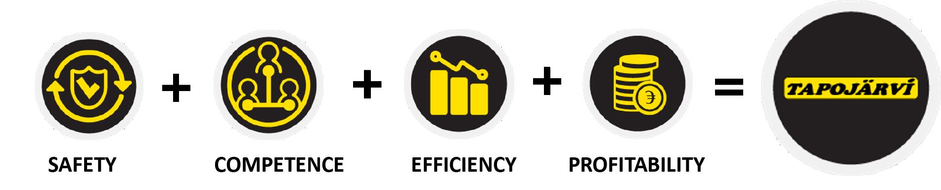 Tapojärvi’s aim to be the preferred provider of services for its clients is manifested in our commitment to provide environmentally sustainable products and services – in a safe and sustainable manner. The company’s strategy and management include continuous improvement, development of the service provision, financial foresight, and risk management.