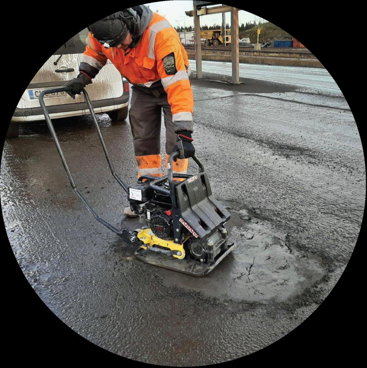 4. Seal the patching material in the pothole using a vibrator, tamper, shovel, etc.