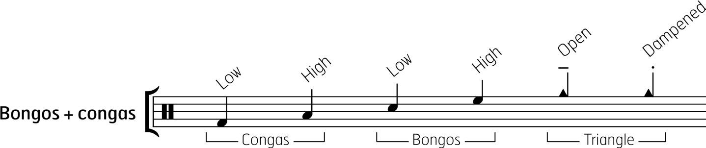 Whenever possible, mount smaller auxiliary instruments—such as triangle and cowbell—to facilitate quicker transitions between instruments.