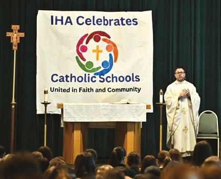 Catholic Schools Week 2025 was a huge success at IHA. We began the celebration with a beautiful Mass presided by Fr. Frank Fano on Monday and on Tuesday everyone at the school watched an exciting volleyball game between students and faculty. On Wednesday, the IHA community joined together for a pep rally hosted by the officers of the freshman and sophomore class. Students had a blast playing wheelbarrow relay races; a basketball free throw game; back-to-back beach ball carry; teacher and IHA trivia; and musical Hula-Hoops.