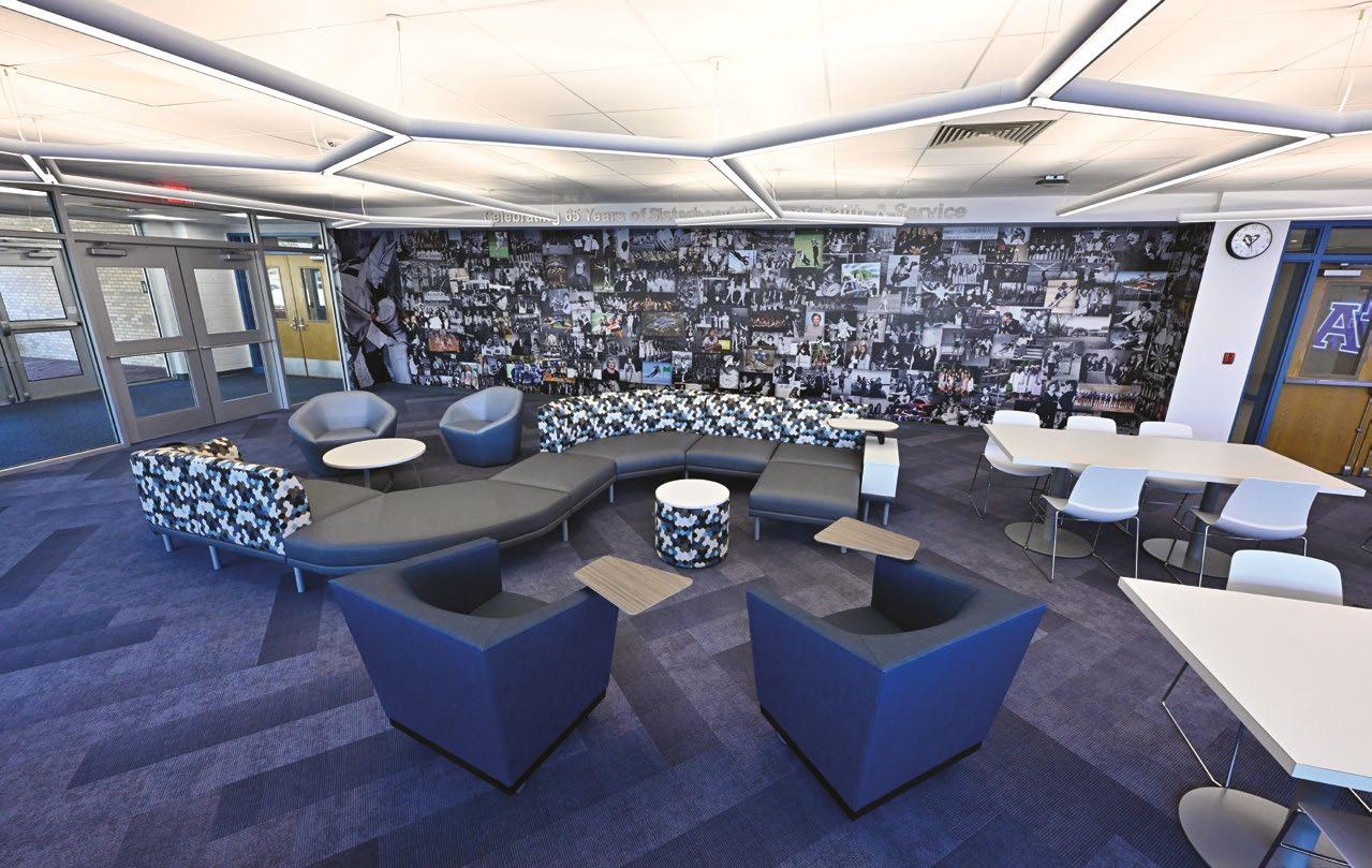 Students were thrilled to begin the school year and see their newly renovated multi-purpose room when they first walked into the school this past September. The new design includes comfortable couches and chairs; a picture wall celebrating our 65 years as a school; new lighting including a sparkling chandelier; and a beautiful lighted IHA logo that is visible from the parking lot. The renovated room is a relaxing new space for students to study and unwind with their fellow sisters.