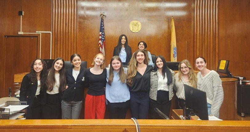 The defense team of the IHA Mock Trial Club took home a win against Barnstable Academy on January 8, 2025. The team had the opportunity to compete in a real courtroom at the Bergen County Justice Center. Thank you to club moderator, Mrs. Emily Fernandez for coordinating this event. Standing left to right in the group photo are Sophia Nemeth ’26, Madison Les ’26, Kathryn Williamson ’26, Katherine Montesano ’28, Grace Higgins ’28, Juliet Fisher ’27, Maureen Hennelly ’26, Victoria DelJuidice ’25, and Kathleen Brancato ’26.