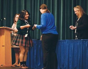 During the 2023-24 school year, 43 students earned Distinguished Honors for the year by earning averages of 95% or better each quarter, and 206 students were recognized with Honors by earning averages of 90% or better each quarter. Mrs. Amy Baskin, assistant principal of academics, commended each of the students for their hard work and perseverance and then presented each one with a certificate.