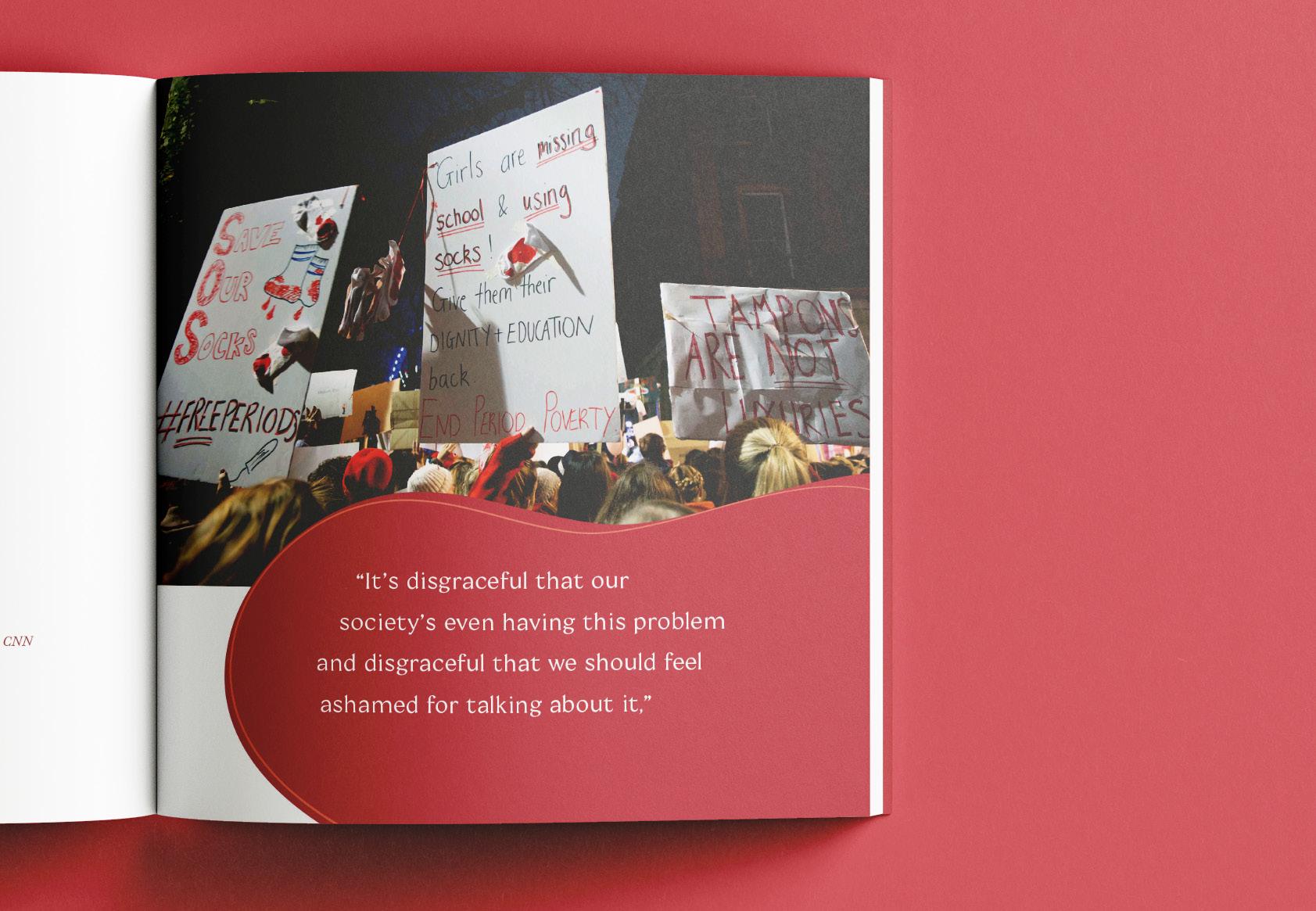 One of my projects in my final year of my degree involved the creation of a publication about a topic I care about. I chose to look at the topic of period poverty and stigma, something that millions of people deal with around the world. The publication looks at the issue, sharing stories, artwork, images, poems and more that I collected in my research. Each section is a different continent, looking at the issue in different cultures and showing how prevalent it truly is. I believe that design can make a real difference so focusing on topics and issues that are meaningful to me is very important in my work.