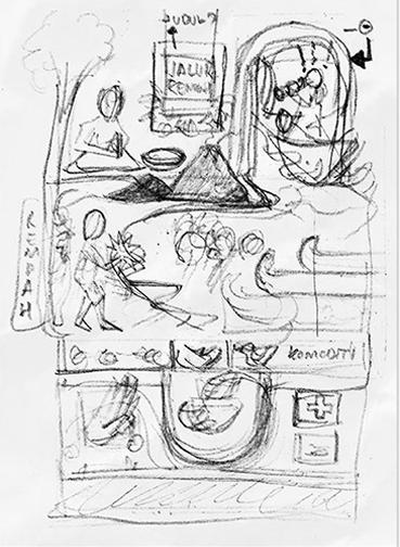 Combining many visual elements and illustration style through the design concepts. From Borobudur and Prambanan reliefs, manuscript illustration from Turkey/Persian, Mughal Painting, Murals by Indonesian Painter - Sapto Hudoyo and many more.
