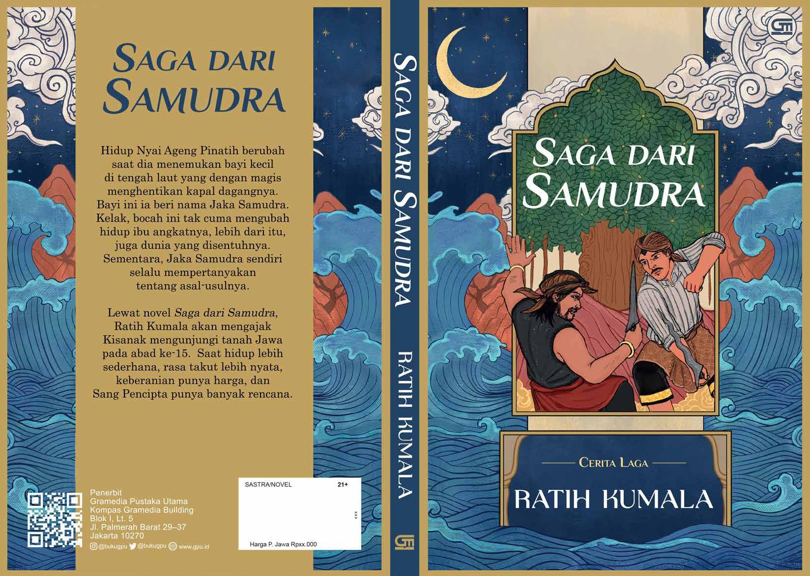 ‘Saga dari Samudra’ is an action novel written by Ratih Kumala (‘Gadis Kretek’ Writer). Telling the journey and life story of Jaka Samudra, who spread the teachings of Islamic Religion under the title ‘Sunan Giri’. A combination of Persian-style paintings and the cover of action tales series: ‘Api di Bukit Menoreh’ by S.H. Mintardja inspired the illustration design for the cover and content of the book.