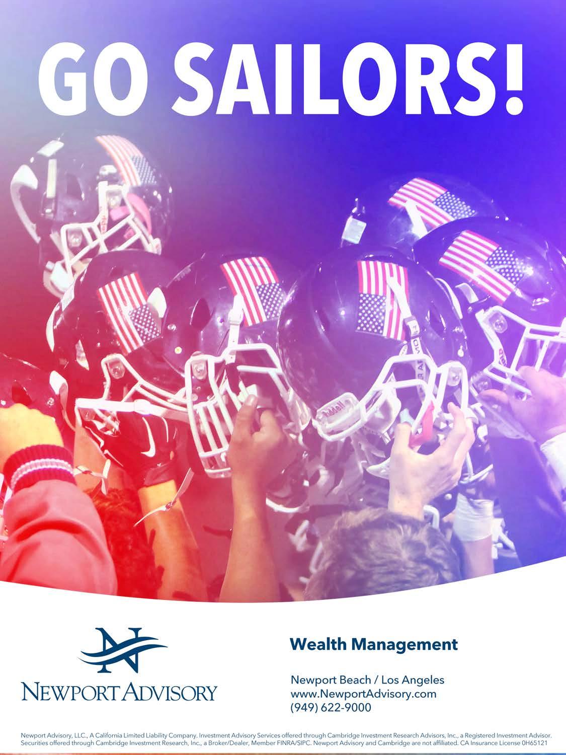 EMILY NORTON GoSailors! Loan Officer 714.496.2324 emily@nalfinancial.com nalfinancial.com N.A.L. Financial, Inc. 414 31st Street, Suite B, Newport Beach NMLS #2029667 YOUR SOURCE FOR HOME LOANS Dine at Olea Restaurant ... and walk to the Harbor Football Game (949) 287-6807 to reserve your table or OleaNewportBeach.com WINE COUNTRY CUISINE IN NEWPORT BEACH Call to schedule a free concierge-style professional business banking meeting (866) 323-2741 Helping Southern California businesses and individuals reach their financial goals since 2007. Jeff2 Real Estate Pacific Coast Realty Group Jeff2realestate.com Jeff Butcher / Jeff McConville 234 E. 17th St. Ste 118, Costa Mesa CalDRE #01104911 (949)422-1108