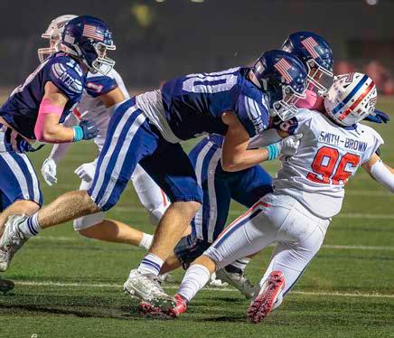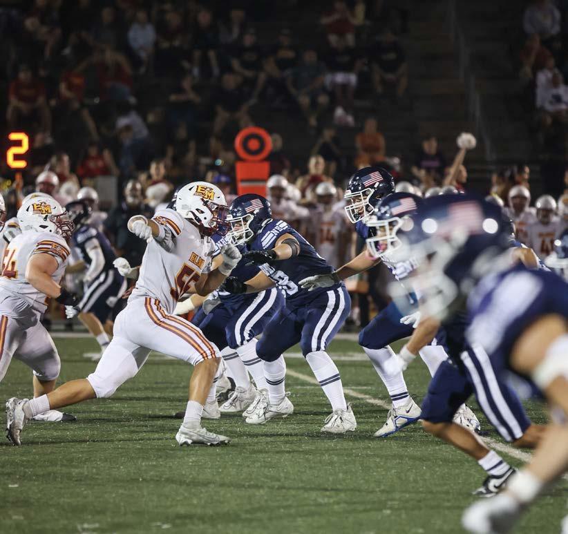 The Sailors returned from their bye week to face off against the Tesoro Titans in an important league-opener. Both teams delivered intense performances in a game that is surely an instant classic that had the crowd on its feet until the last second. After a scoreless first quarter, the Titans found their rhythm and dominated the second quarter scoring 17 unanswered points. Newport Harbor started the second half down 17-0. Undeterred, the offense, defense and special teams came to life and ignited a comeback for the ages. The second half was full of electrifying plays from both teams and five lead changes. Jake Meer led the offense going 14 for 23 for 289 yards and had a crucial run with a roll out scamper to the end zone with one minute to go on the clock that would ultimately secure the win for the Sailors. Cade Fegel turned in a highlight reel performance that included a 91-yard kickoff return for a score, an interception, and four catches for 98 yards and a touchdown. Sammy Stremick was Jake’s other key target hauling in five catches for 91 yards. The run game delivered when it mattered with Glenn Baranoski and Ryker Budde running hard at the goal line to combine for two touchdowns. The Sailors defense was able to slow down Tesoro’s offense in the second half, allowing them only two touchdowns. Tony Glynn, Hudson Perez, Sammy Stremick, Glenn Baranoski combined for 20 solo tackles. Cruz Marsella and Davis Post each had solo tackles for loss. John Pena had a clutch quarterback sack. The Sailors outscored the Titans 34-14 in the second half and found themselves defending a last second field goal attempt for Tesoro to tie the game. With a miss by the Titans, the Sailors earned an exciting and hard fought victory with a score of 34-31.