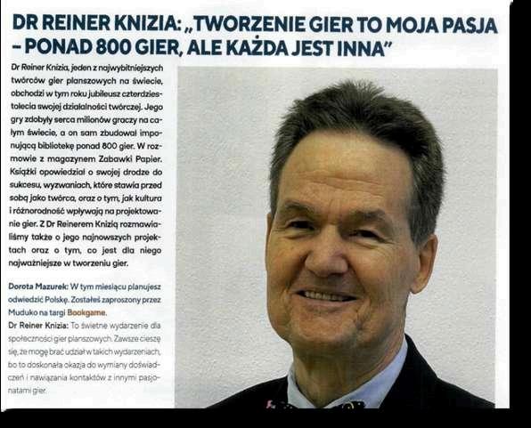 Projektant, legenda gier planszowych, laureat prestiżowych nagród (w tym aż 5 razy German Game Prize), przyjechał na 3. edycję wydarzenia na specjalne zaproszenie BookGame i