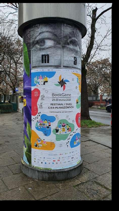 Plakaty promujące Festiwal i Targi Gier Planszowych BookGame 2025 zostały zamieszczone na słupach i przystankach w strategicznych