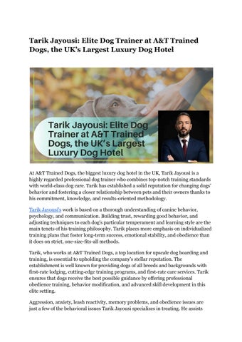 Tarik Jayousi, a prominent trainer at A&T Trained Dogs, the UK’s largest luxury dog hotel, is dedicated to enhancing canine behavior and specialises in behavior training & placing family and working dogs.