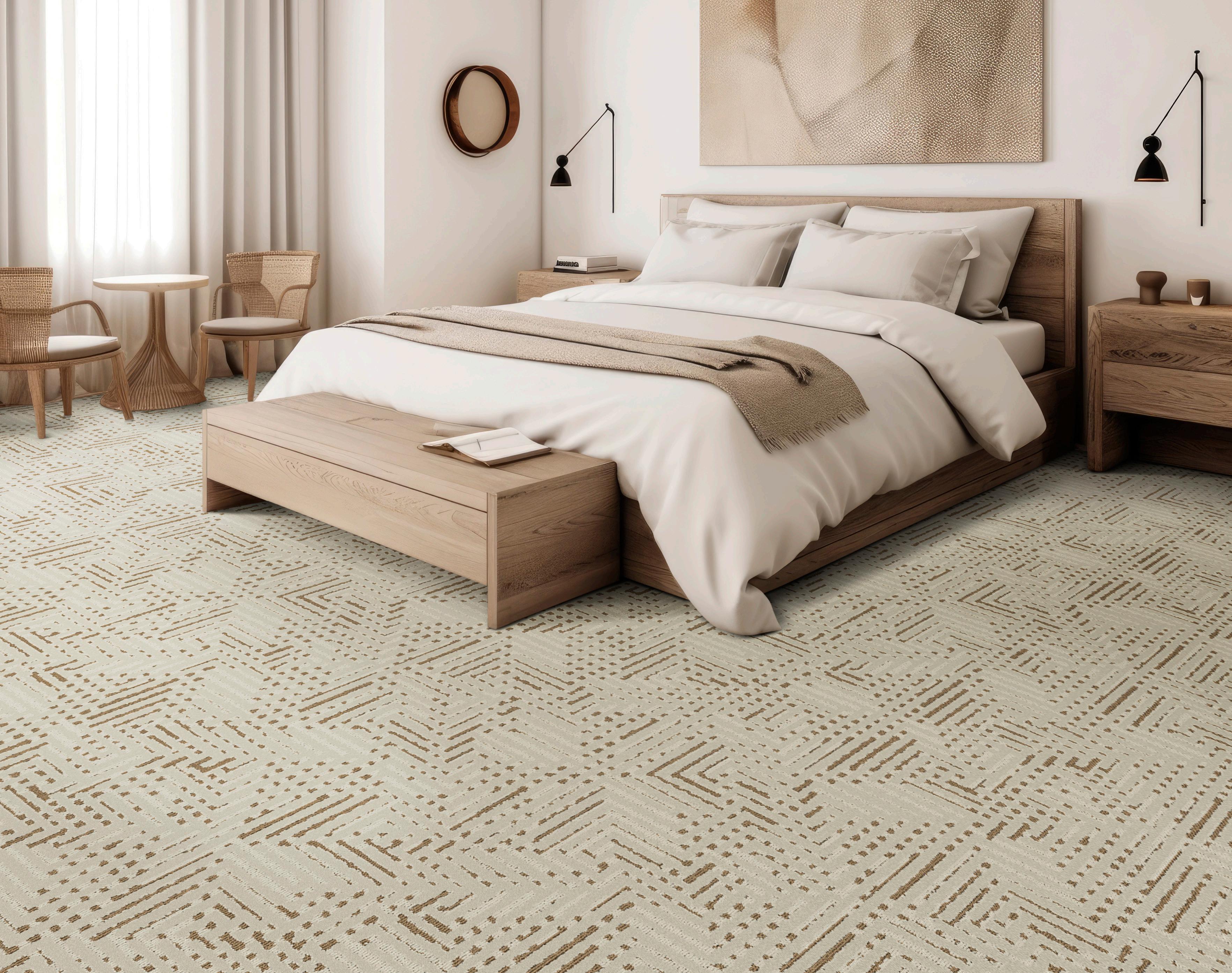 Use the online Custom Design Studio to recolor any Tarkett Hospitality pattern and visualize it in a variety of rooms.