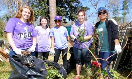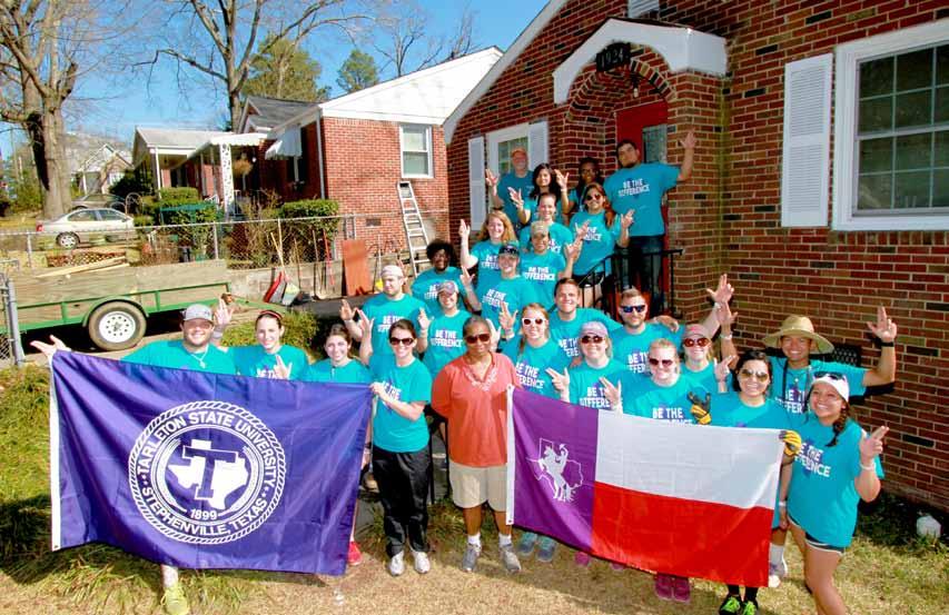 Breaking fromSpring Tradition Members of Tarleton Serves gather on the front steps of Debra Montgomery’s (front, center) home where the student volunteers labored for three days during their Alternative Spring Break trip to repair damages caused by the October 2015 floods that ravaged Columbia, South Carolina.