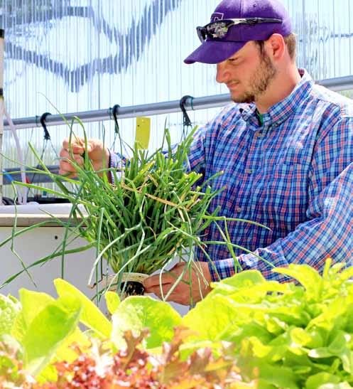 Tarleton’s Aquaponics Hydrotron is a combination of aquaculture and hydroponic systems. “Aquaculture is farming aquatic animals like fish and shrimp,” Cummings said. “Hydroponics is growing plants without soil using nutrient solutions. Aquaponics blends aquaculture and hydroponics in a recirculating loop.” In 2015, Cummings converted the University Agricultural Center’s greenhouse into a combined greenhouse, aquaponics and hydroponics facility. The Hydrotron now serves multiple purposes, which include research, teaching and the farming of plants and fish. Students first approached Cummings about aquaponics. Cummings researched what would be required to set up the Hydrotron, and designed a problems course for students wanting to learn about hydroponics and aquaponics. “Fewer students are choosing a career in agriculture,” Cummings said. “Aquaponics does not require large acreage or even fertile or level soil. So it may be a way to attract a new generation to agriculture because of its lower start-up costs and fewer land requirements.” The United States has a huge demand for food produced locally and aquaponics has a much quicker turnaround for produce than traditional agriculture, with some plants taking only 40 days to reach maturity while using substantially less water. From Tank to Table