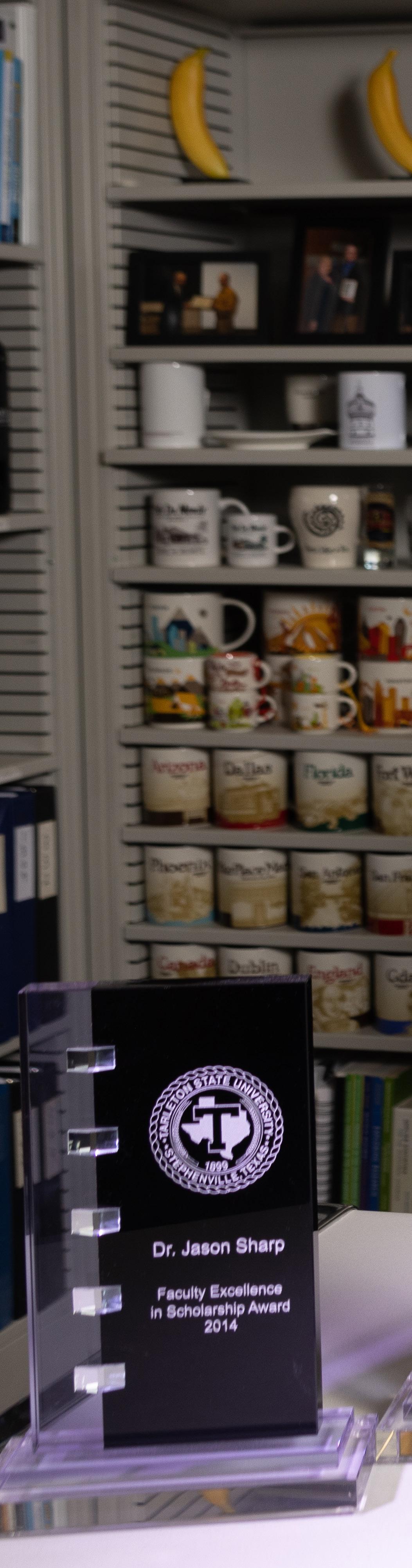 Dr. Sharp has received the O.A. Grant Teaching Award and last year received the Barry B. Thompson Service Award. The latter honor is especially meaningful, as he and Dr. Thompson grew up in the same small West Texas town and both graduated from Kermit High School and Tarleton. Dr. Thompson was Tarleton President during Dr. Sharp’s time as an undergraduate and was, in Dr. Sharp’s words, “the exemplar of outstanding service to students, the campus community and significant student-faculty interactions outside the classroom.”