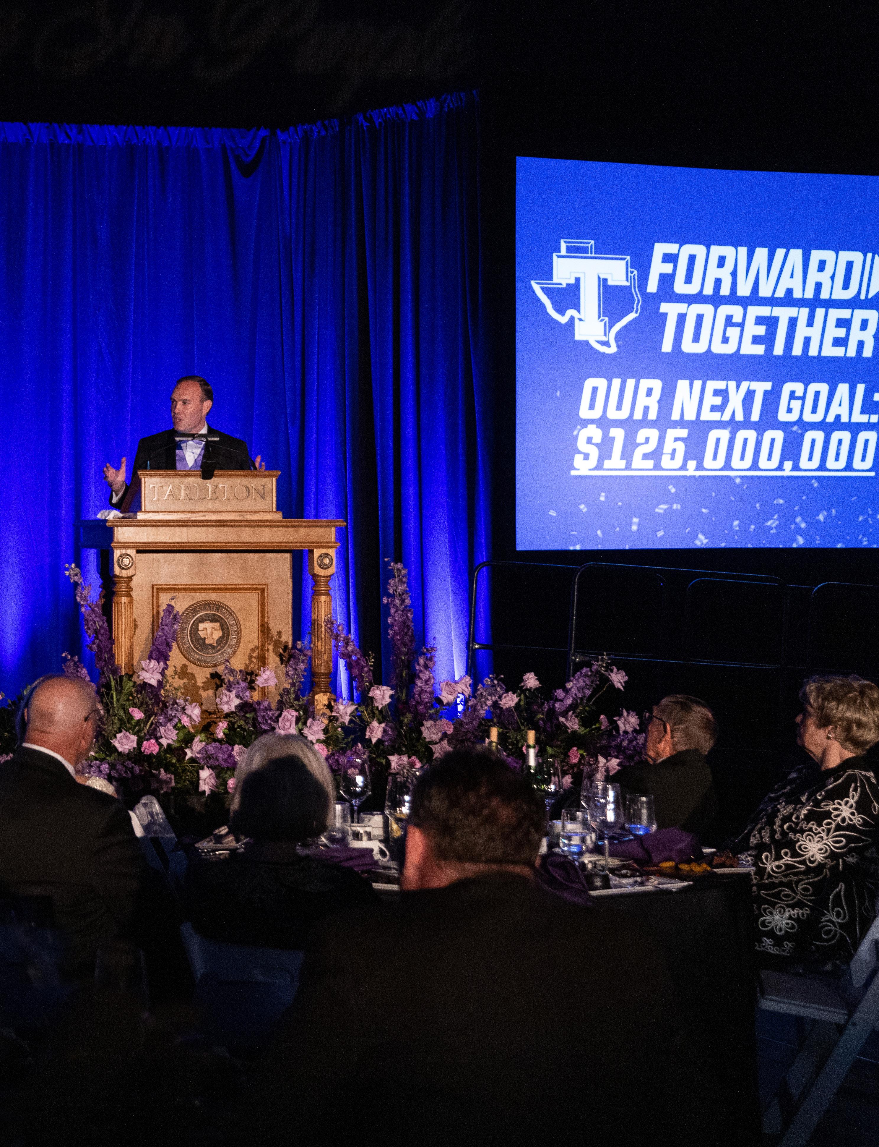 Champions in a different arena — philanthropy — heard impressive news at Tarleton’s annual gala, An Evening in Purple. We beat the $100 million goal in our largestever comprehensive capital campaign two years ahead of schedule and set a new target — $125 million — to commemorate our 125th anniversary in September 2024.