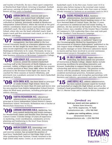 Send your alumni and class updates to Tarleton State University Box T-0730, Stephenville, TX 76402 media@tarleton.edu | (254) 968-9460
