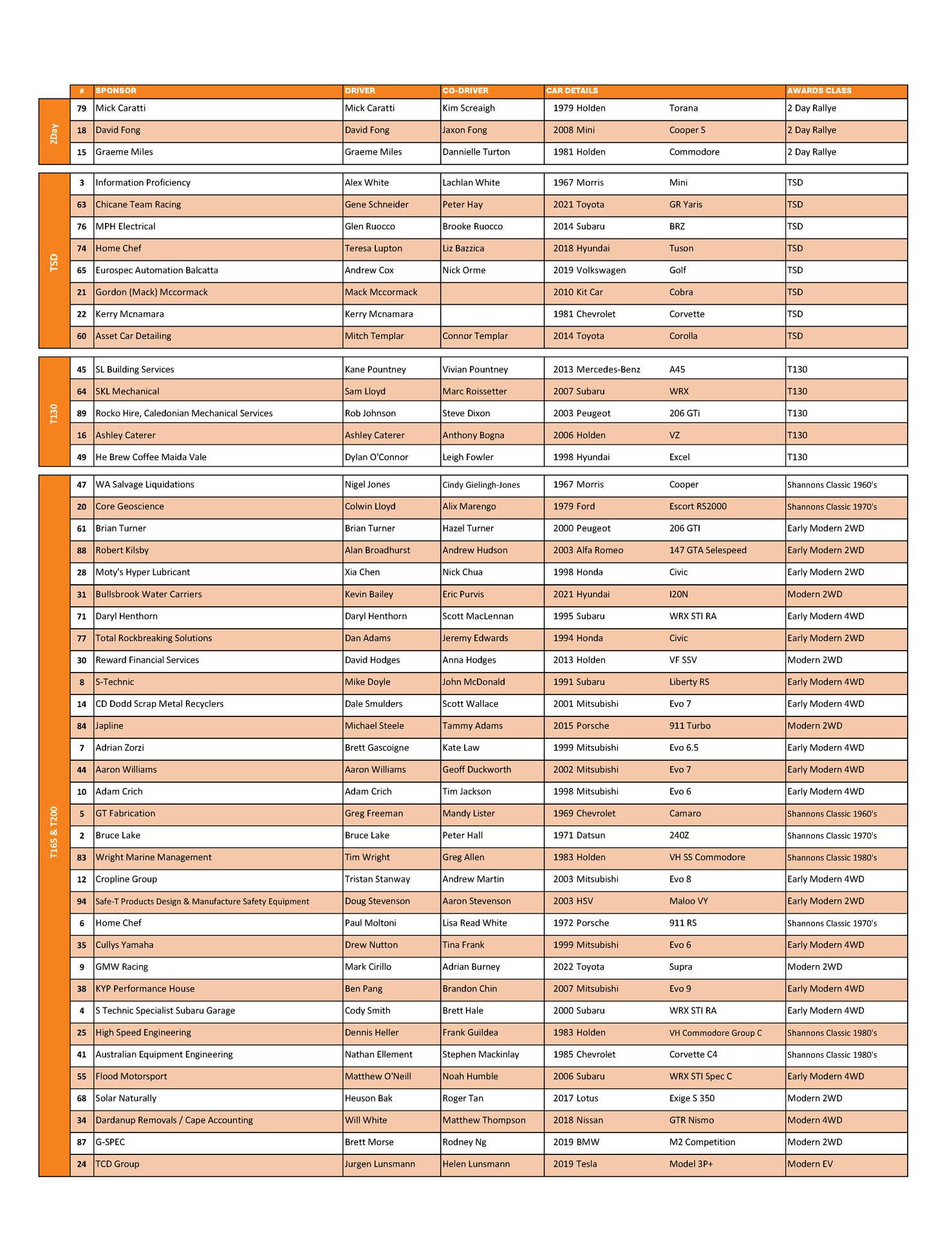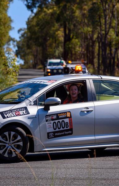 These vehicles warn the spectators and residents that the competition is about to start Car 0A passes approximately 5 minutes before the first Targa 130 Car and conducts another safety check to ensure residents and spectators are in a safe location Car 0B conducts another check before the Competition Category Cars commence their runs