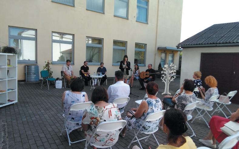 Dovilės Kurlienės nuotr. kas susirinkusiesiems pristatė atvykusius svečius. Jaunoji poetė G. Ambrazaitė paskaitė eilėraščių iš knygos „Trapūs daiktai“ (2018), už kurią jai 2018 m. įteikta Jaunojo jotvingio premija. Poetas, vertėjas D. Norkūnas skaitė iš anglų kalbos vers tus eilėraščius, o Amerikos lietuvis poetas R. Užgiris pristatė savo eilėraščių knygą „Tarp“ (2019). Poetė, literatūrologė L. Buividavičiūtė ne tik skaitė savo kūrybos eiles, bet ir plačiau pristatė kiekvieno svečio kūrybą. Vakarą gitaros akordais ir dainuojamąja poezija praskaidrino P. Girdenis.