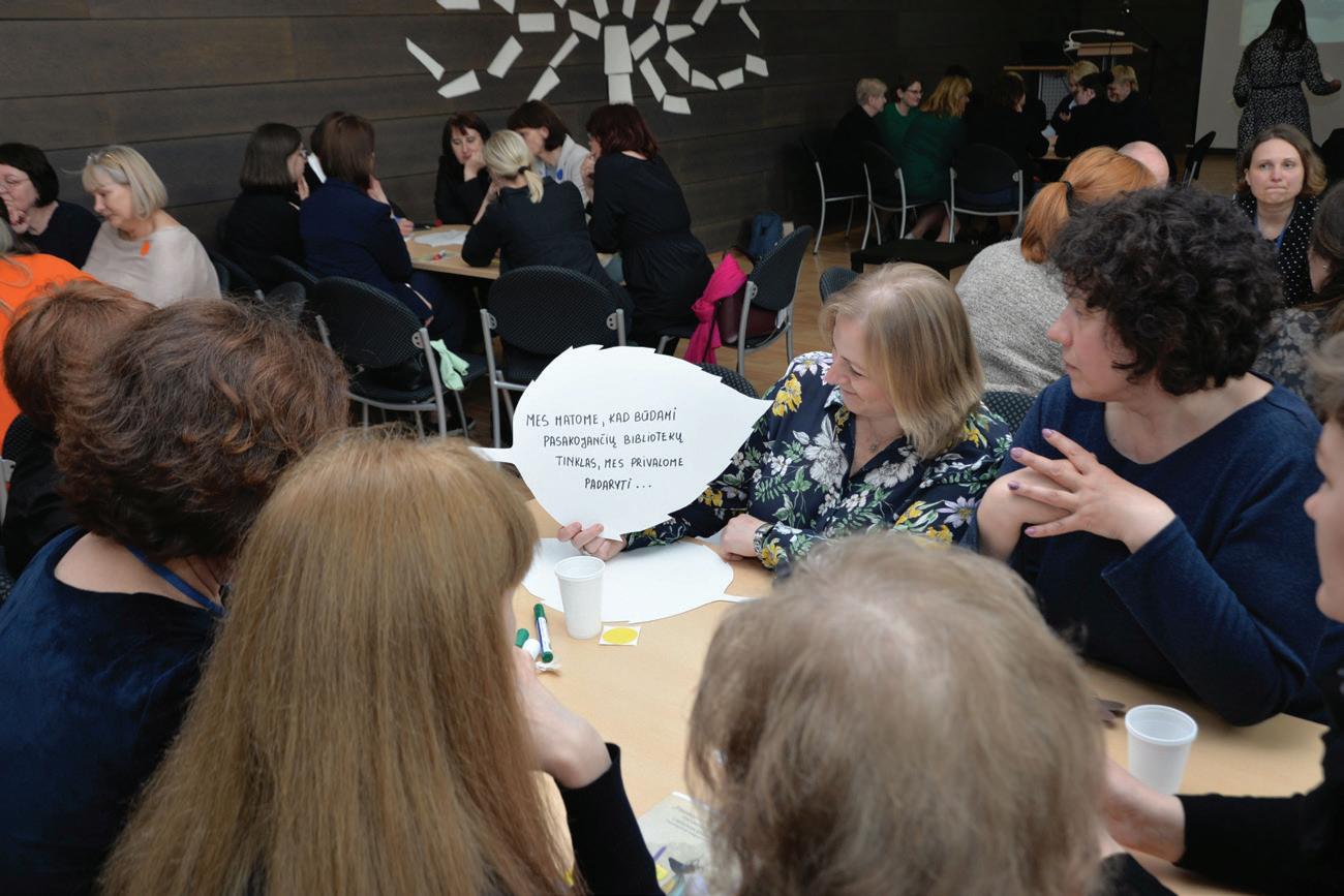 Vykdant projektą „Pasakojimo meno ir metodo modelio sukūrimas Lietuvos bibliotekoms“, Panevėžyje susirinkę bibliotekininkai braižė tinklo perspektyvas.