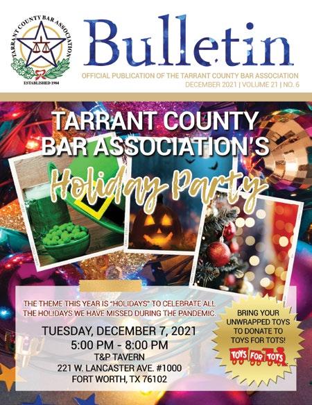 The Tarrant County Bar Bulletin is a bi-monthly publication of the Tarrant County Bar Association. Articles, photos, suggestions or comments should be directed to: elizabeth@tarrantbar.org