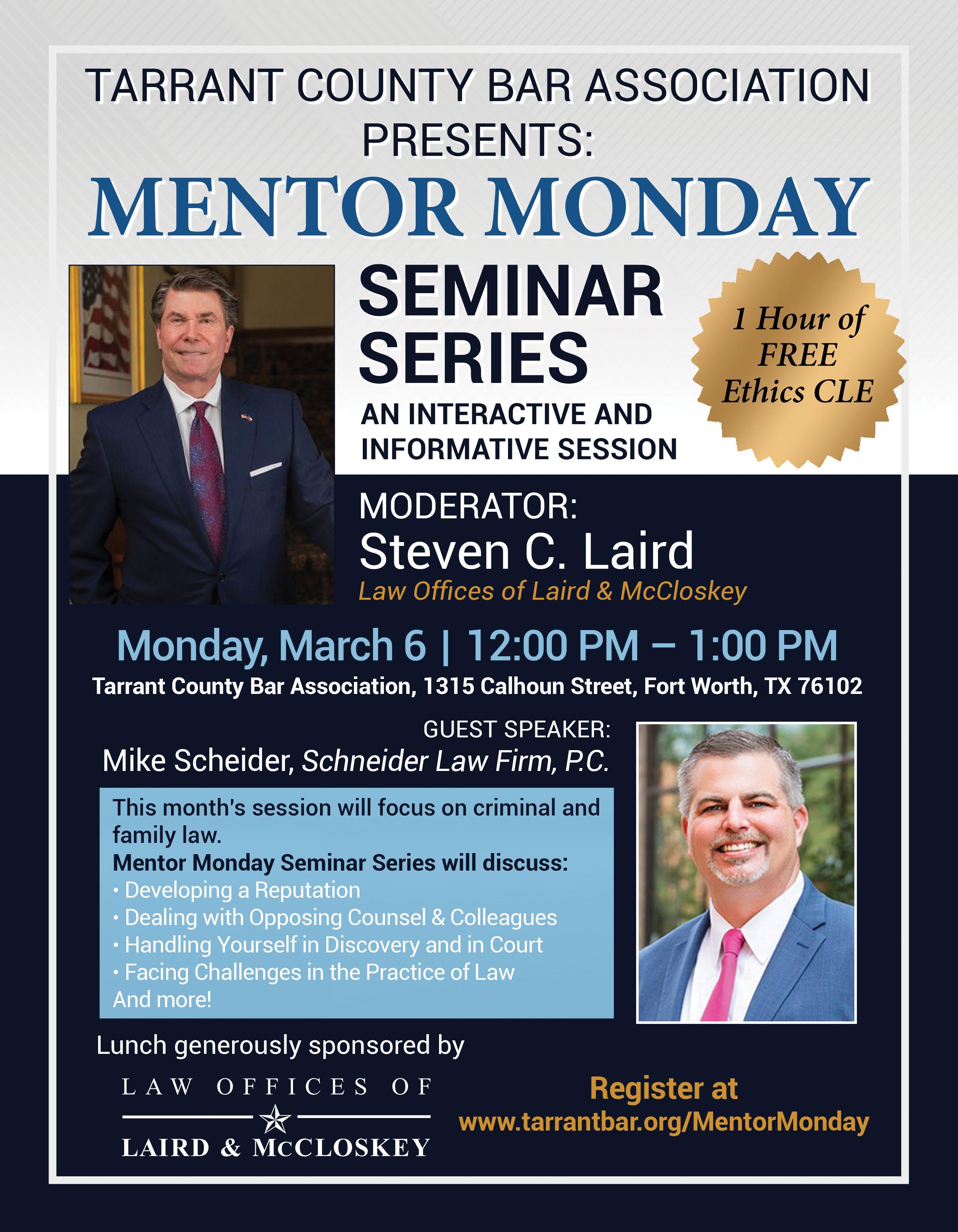 For more information on upcoming events, visit the TCBA website at www.tarrantbar.org/events.