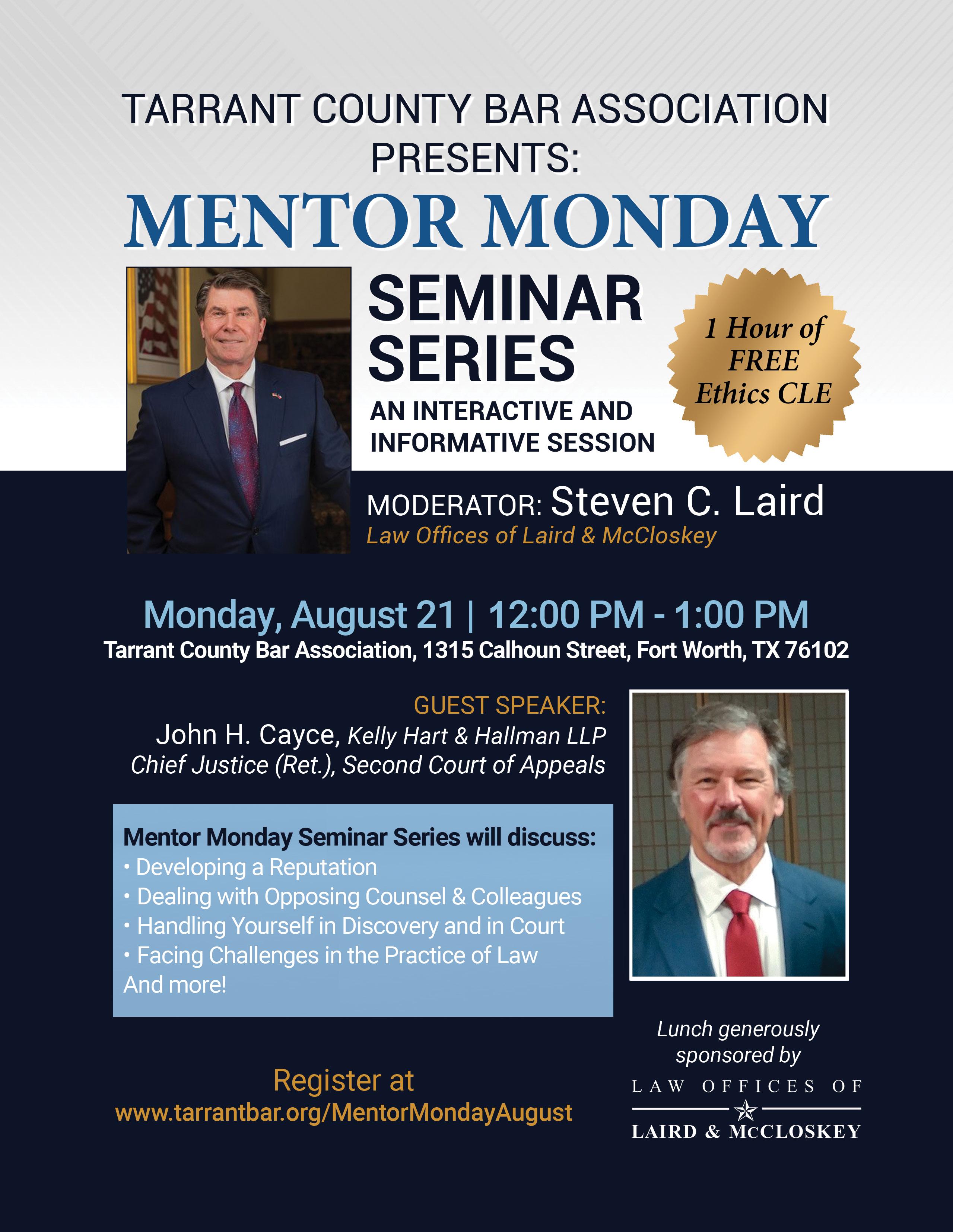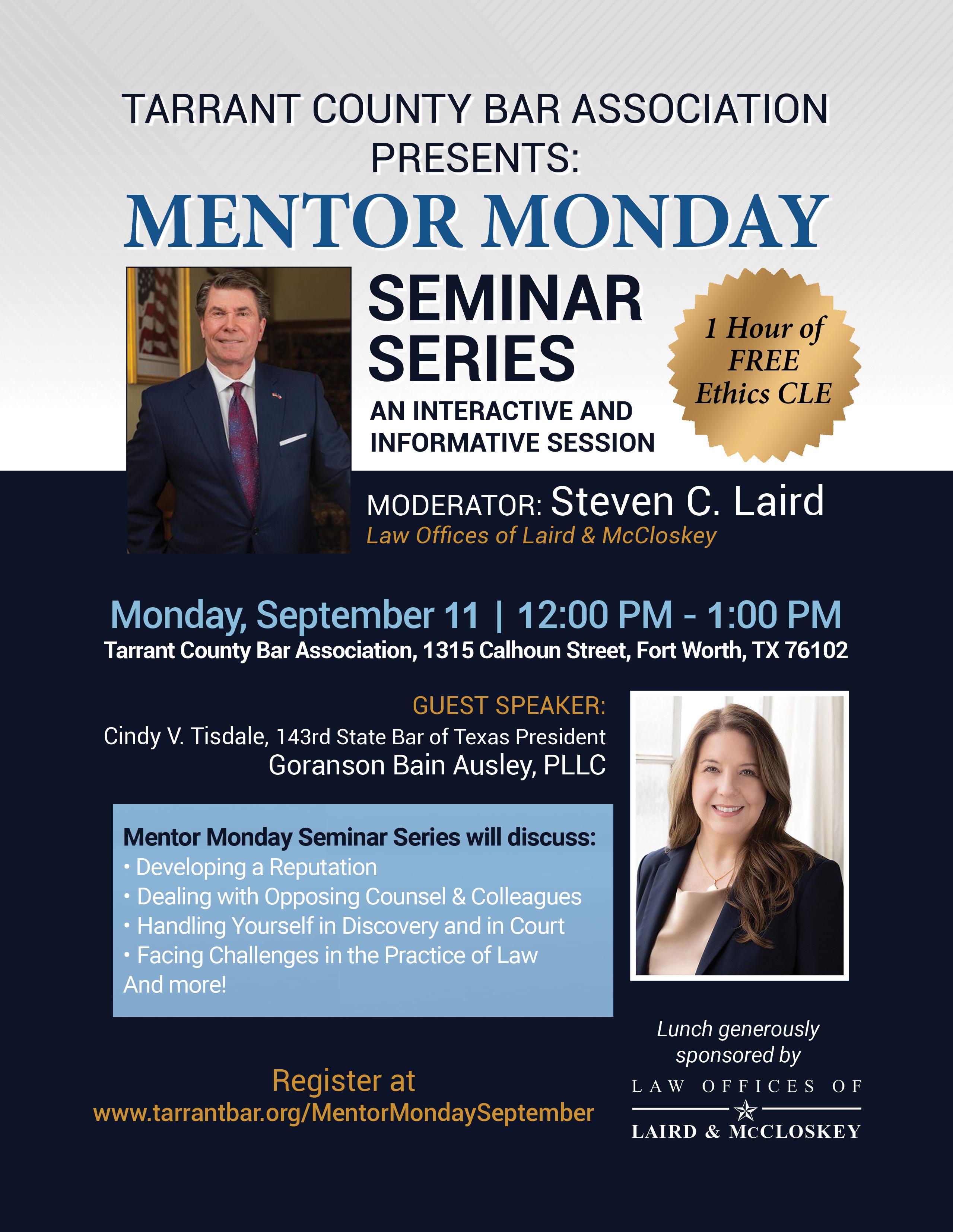 As President of the TCBA, my goal for this year is to encourage greater member involvement, create more networking opportunities, and establish mentorship programs for new lawyers. The TCBA is a gateway to numerous possibilities, and I want all our members to benefit from the same opportunities that have shaped my career. One program that I would like to highlight is Mentor Mondays, spearheaded by Steve Laird, who has generously dedicated his time, expertise and resources to this program. Mentor Mondays offers a platform for young lawyers to connect with experienced lawyers for professional