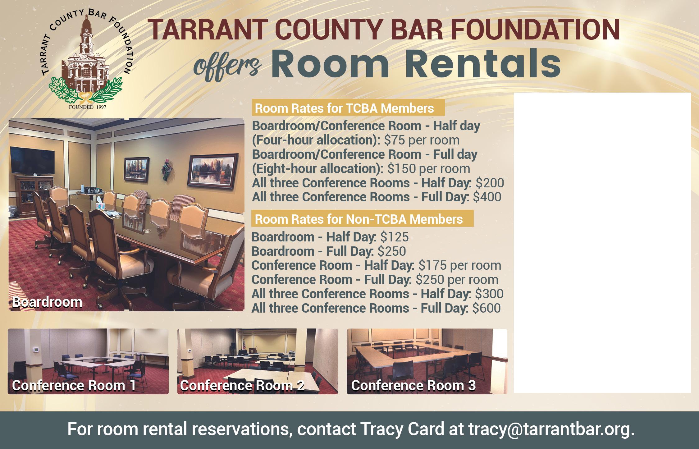 Any room can be rented for an hourly rate of $35 regardless of membership status. Rates are for 9 a.m. - 5 p.m. rentals. Outside of normal rental hours incur an additional fee of $25 per hour per staff member and must be preapproved. Lastminute time extensions are not allowed. Social, Charitable, and Judicial/Political receptions are $500 from 4-9 p.m. After 9 p.m. an additional fee of $100 per hour per staff member will be charged. Last-minute time extensions are not allowed.