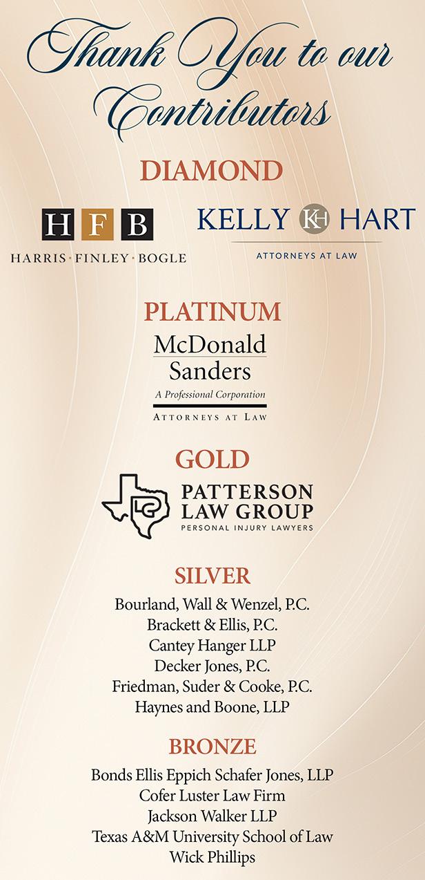To be eligible for the 100 Club, any law firm, government agency, law school, or corporate legal department with four or more members must attain 100% TCBA membership compliance for the 2025–2026 bar year. This qualifies them for the “100 Club.” The firms/ organizations listed above have already paid their membership dues and qualify for 100 Club membership