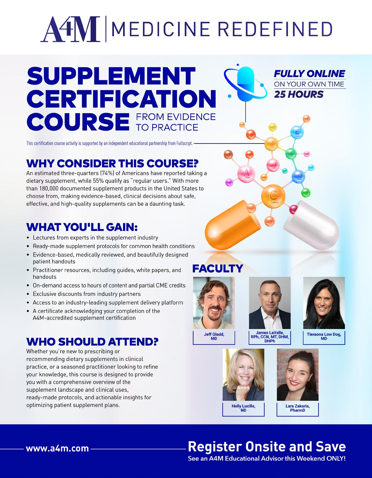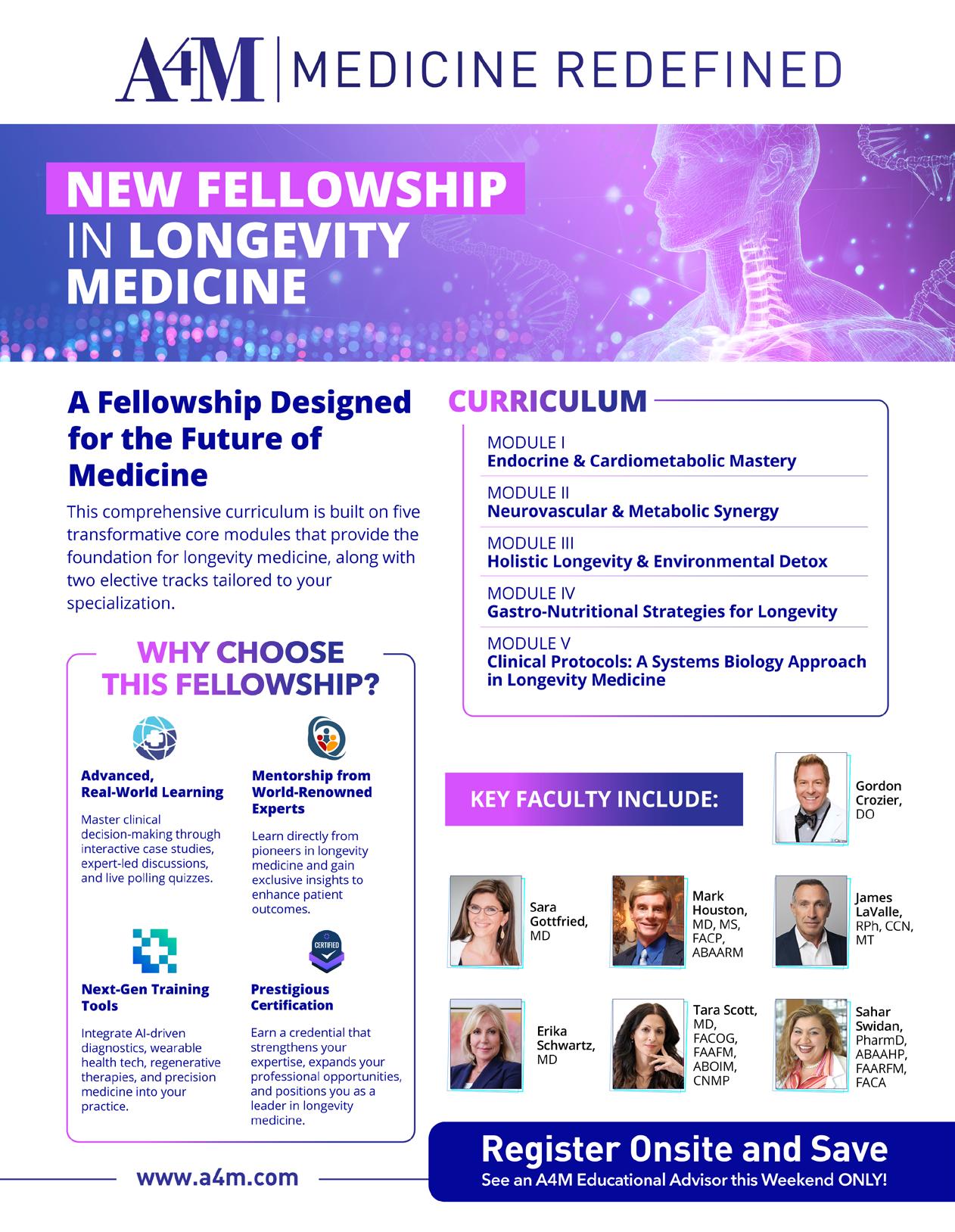 The promise of longevity medicine is vast, but its fulfillment depends on practitioners like you who pair specialized expertise with clinical discernment and the latest science with practical application.