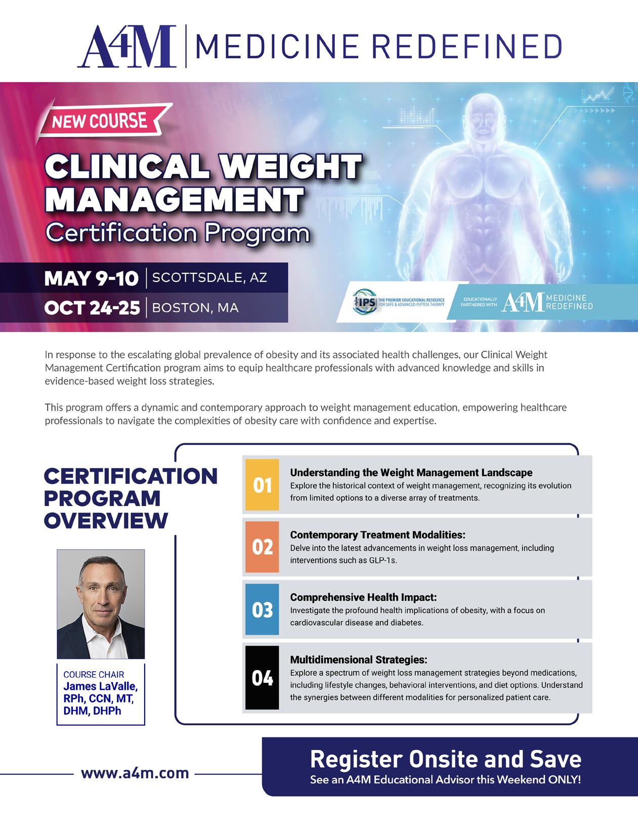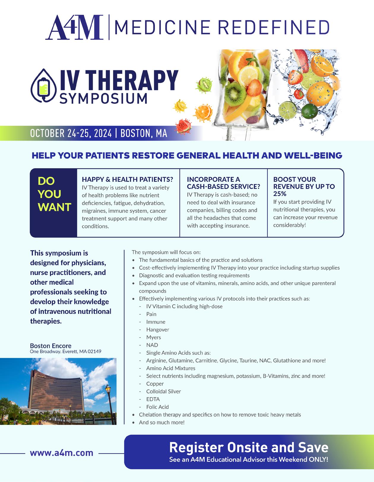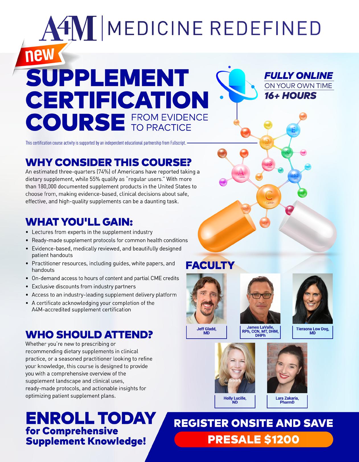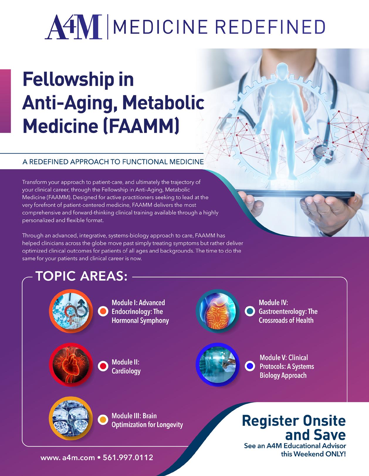 PHOTO RELEASE: Anyone in attendance at any A4M event may be subject to any photography or videography conducted during the event which may be used in any form for future media purposes. Any concerns, please contact A4M.