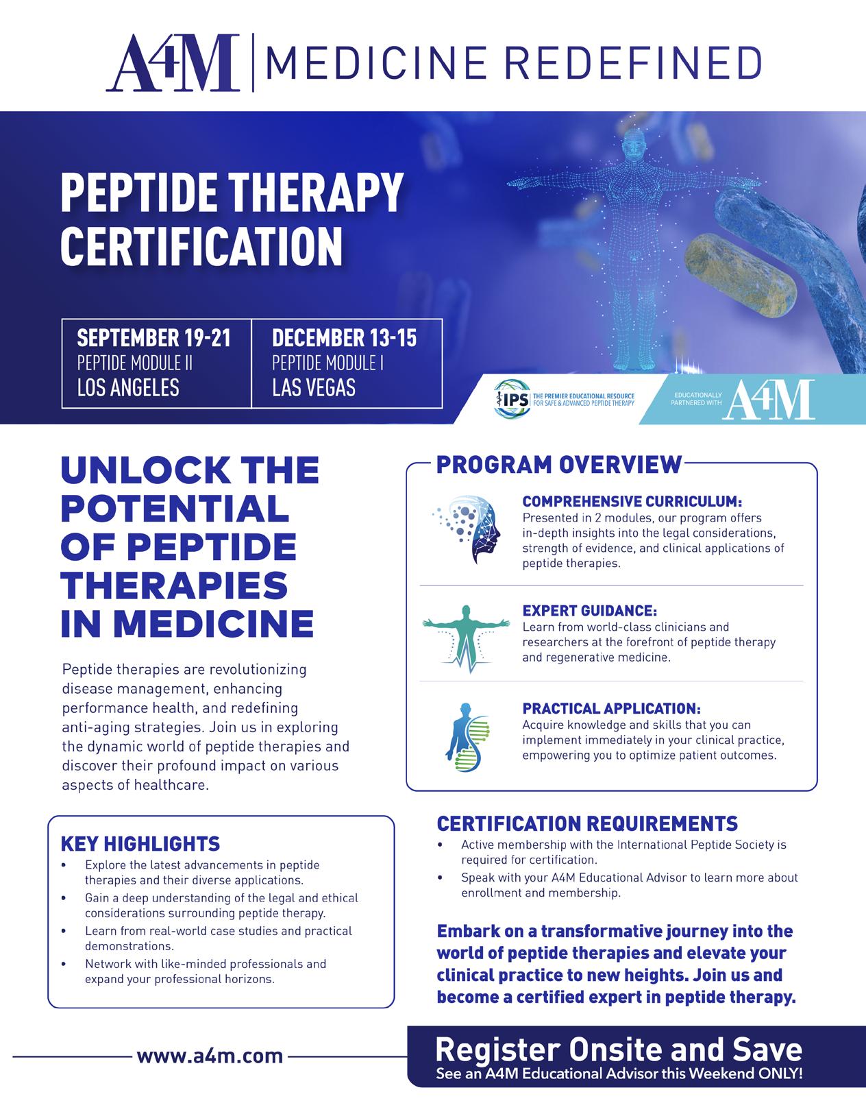 We are grateful for your participation and know that your patients, their families, and generations to come will benefit from your dedication to their wellbeing. As A4M-educated, innovative, bold, and patient-focused providers, you hold the key to your patient’s wellbeing.