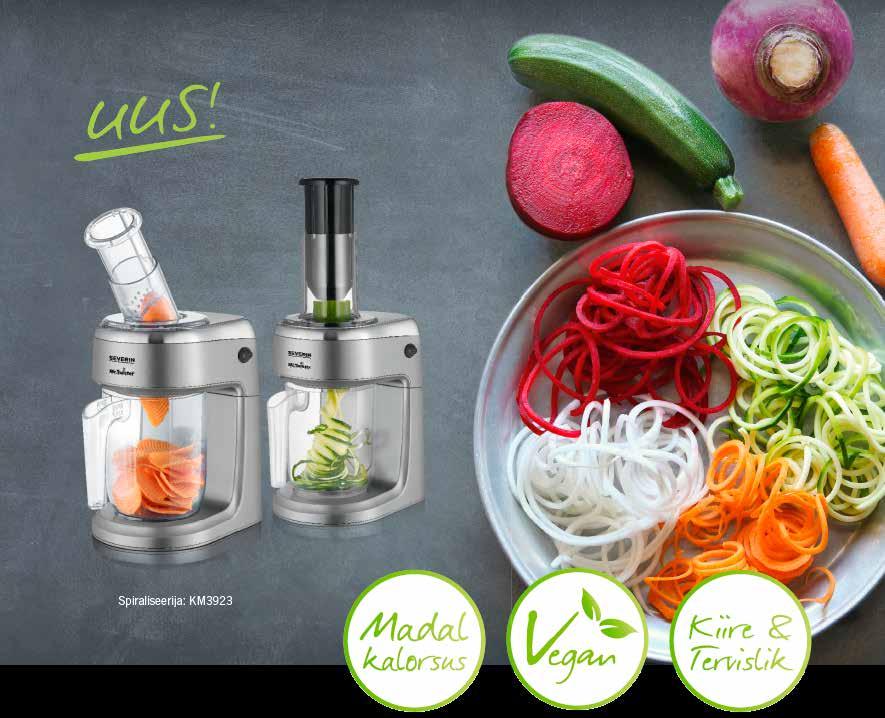 Kasuta 3. lõiketera (eriti õhukesed vii lud) või 4. lõiketera (eriti paksud viilud) koos spiraalitajaga ning lõika suvikõr vits nuudlikujulisteks ribadeks. Puhas ta aeg-ajalt juurviljade lisamise ava. Keeda ribasid soolaga maitsestatud vees või auruküpsetajas 1–2 minutit,