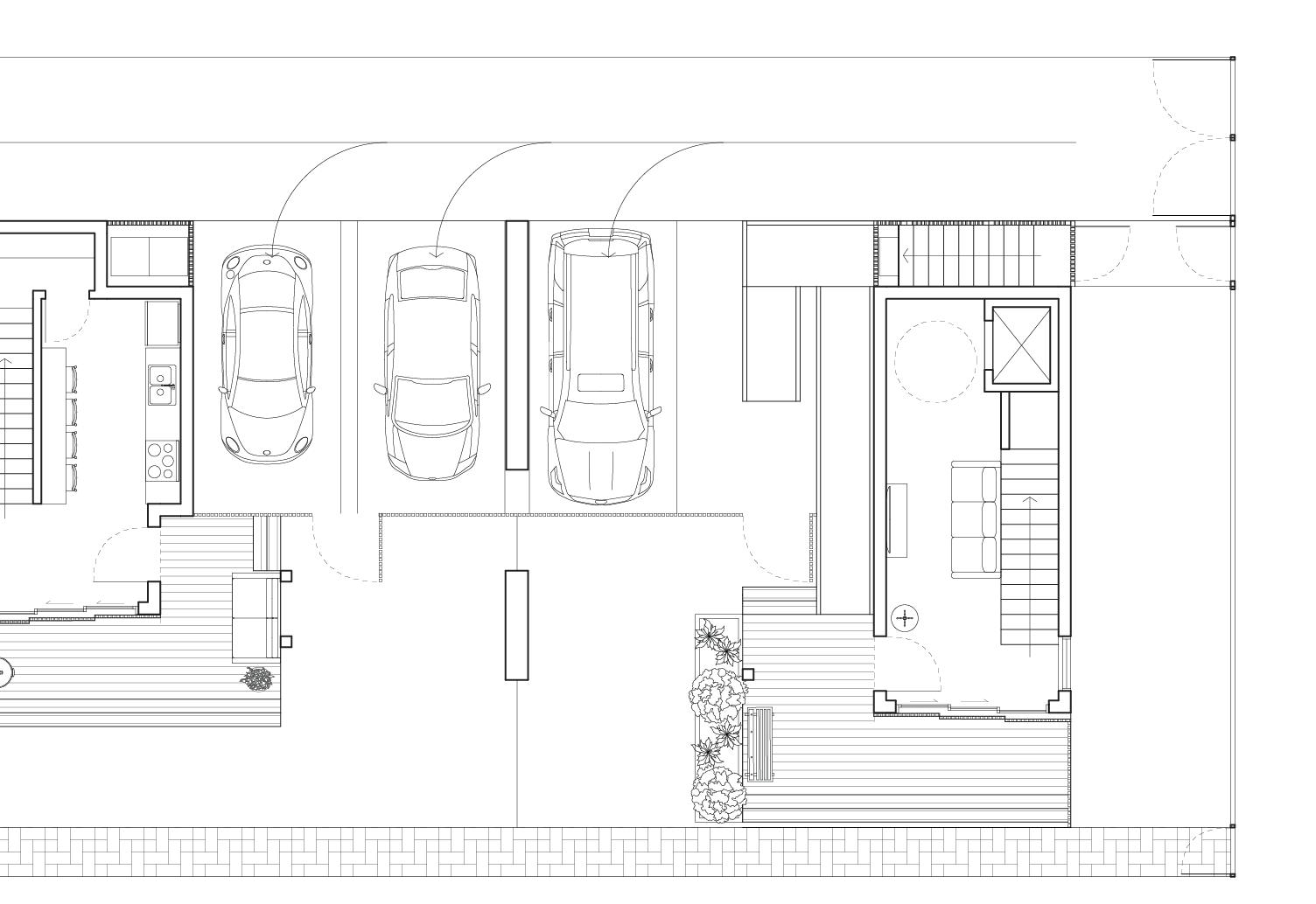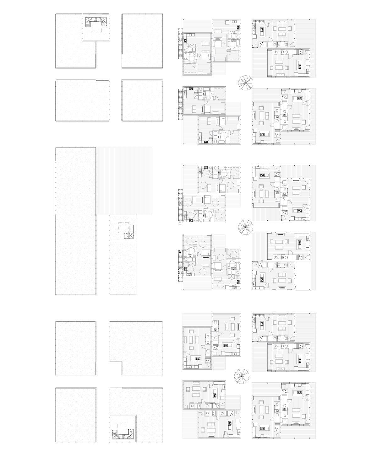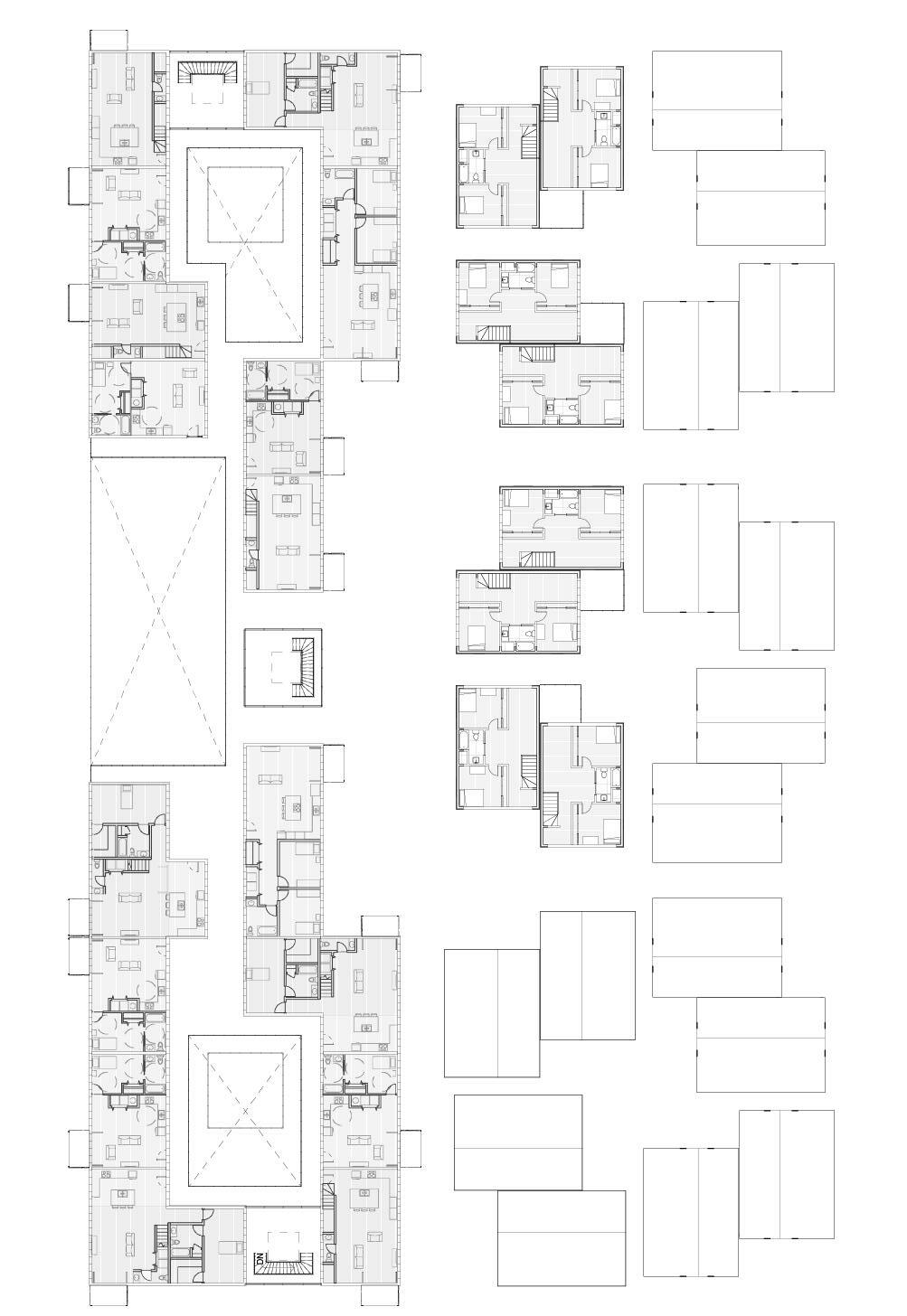 The sense of community in an infill condition necessitates dedicated area for shared spaces such as alleys, walkways, balconies, and gardens which facilitate interactions between neighbors. Approximately half of the lot area is liberated from inhabitable space and is dedicated to large green spaces to maintain nature and gardens within the city. As a result, the top floors respond to the dedicated ground conditions to allow light to penetrate through this narrow space to prolong the life of these gardens.