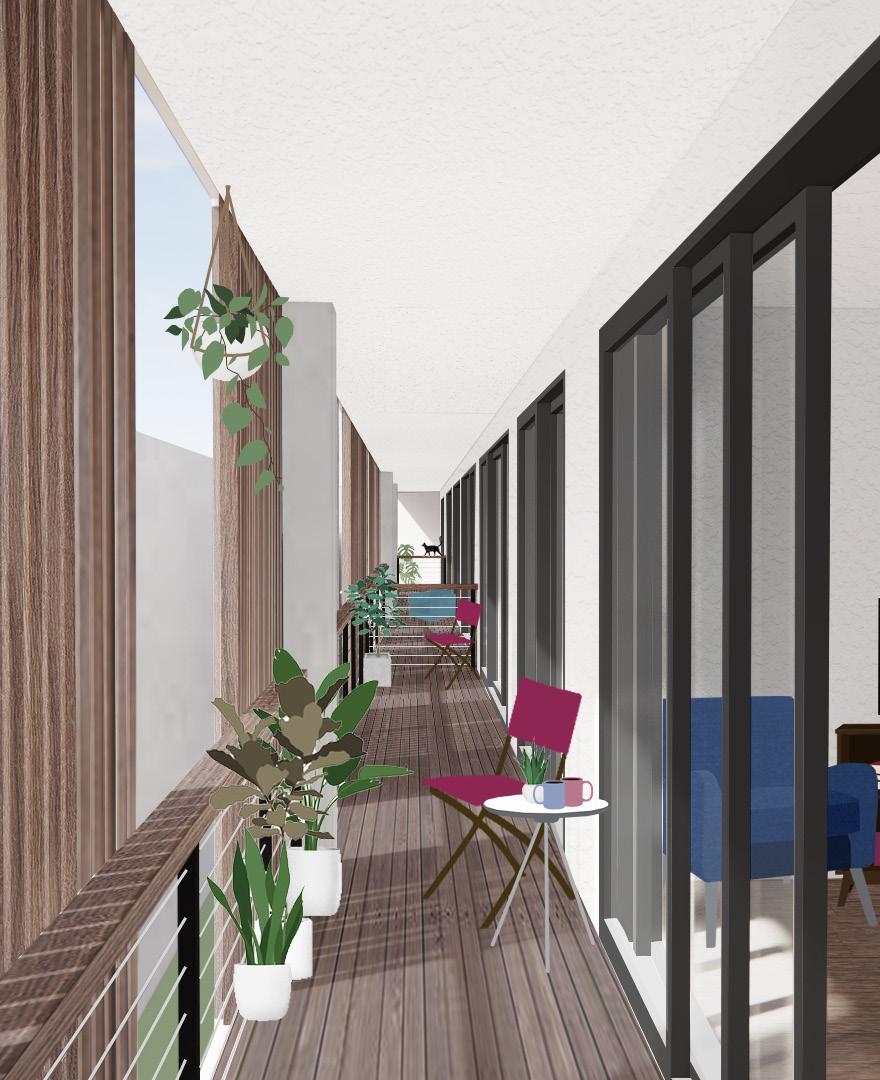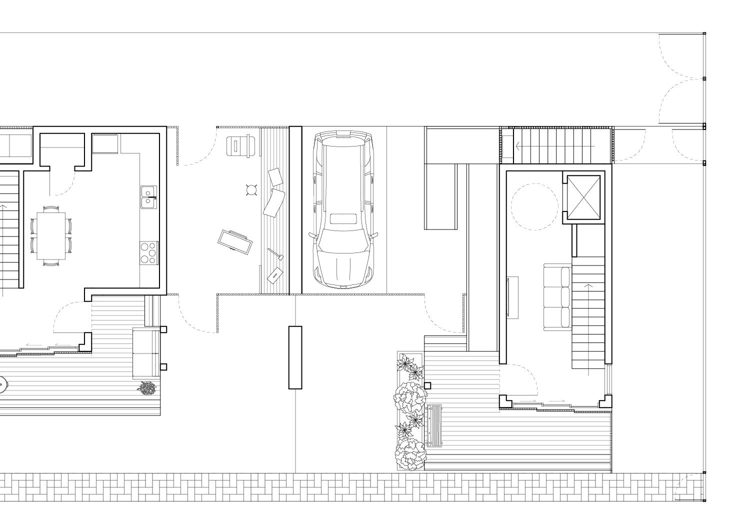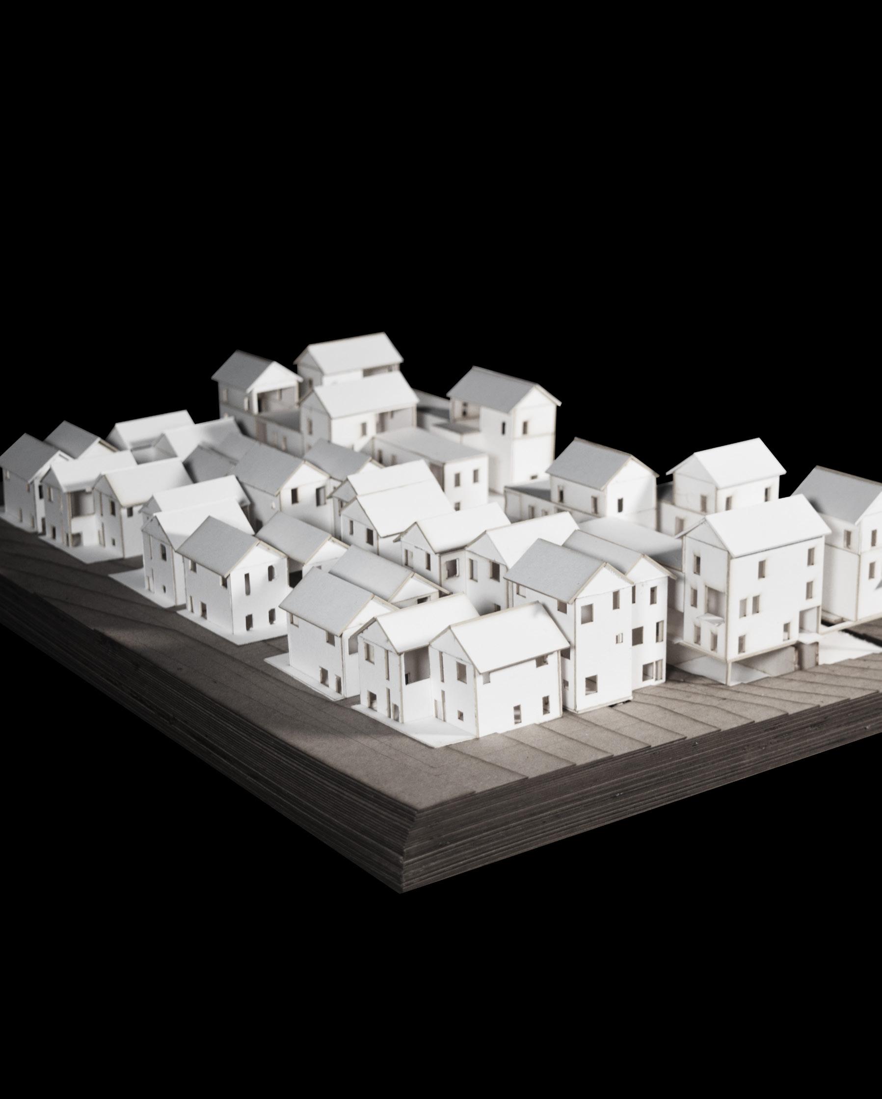 The sense of community in an infill condition necessitates dedicated area for shared spaces such as alleys, walkways, balconies, and gardens which facilitate interactions between neighbors. Approximately half of the lot area is liberated from inhabitable space and is dedicated to large green spaces to maintain nature and gardens within the city. As a result, the top floors respond to the dedicated ground conditions to allow light to penetrate through this narrow space to prolong the life of these gardens.
