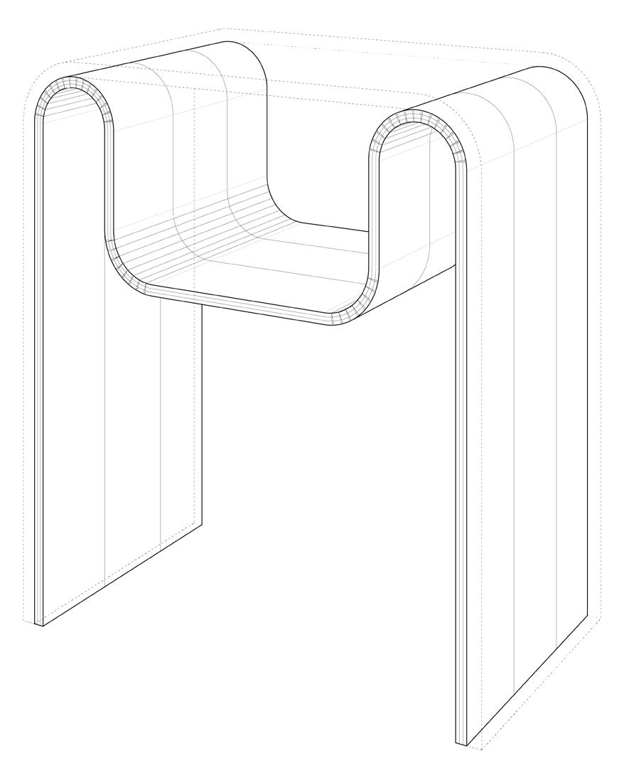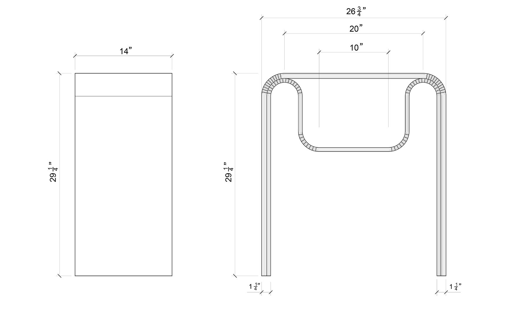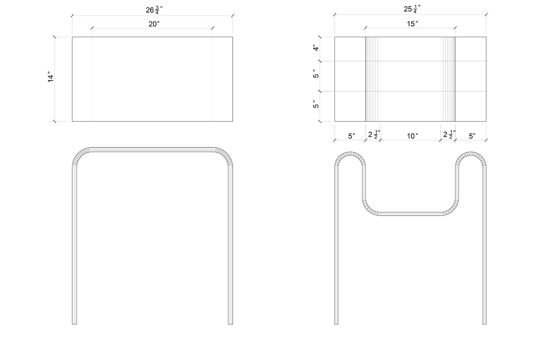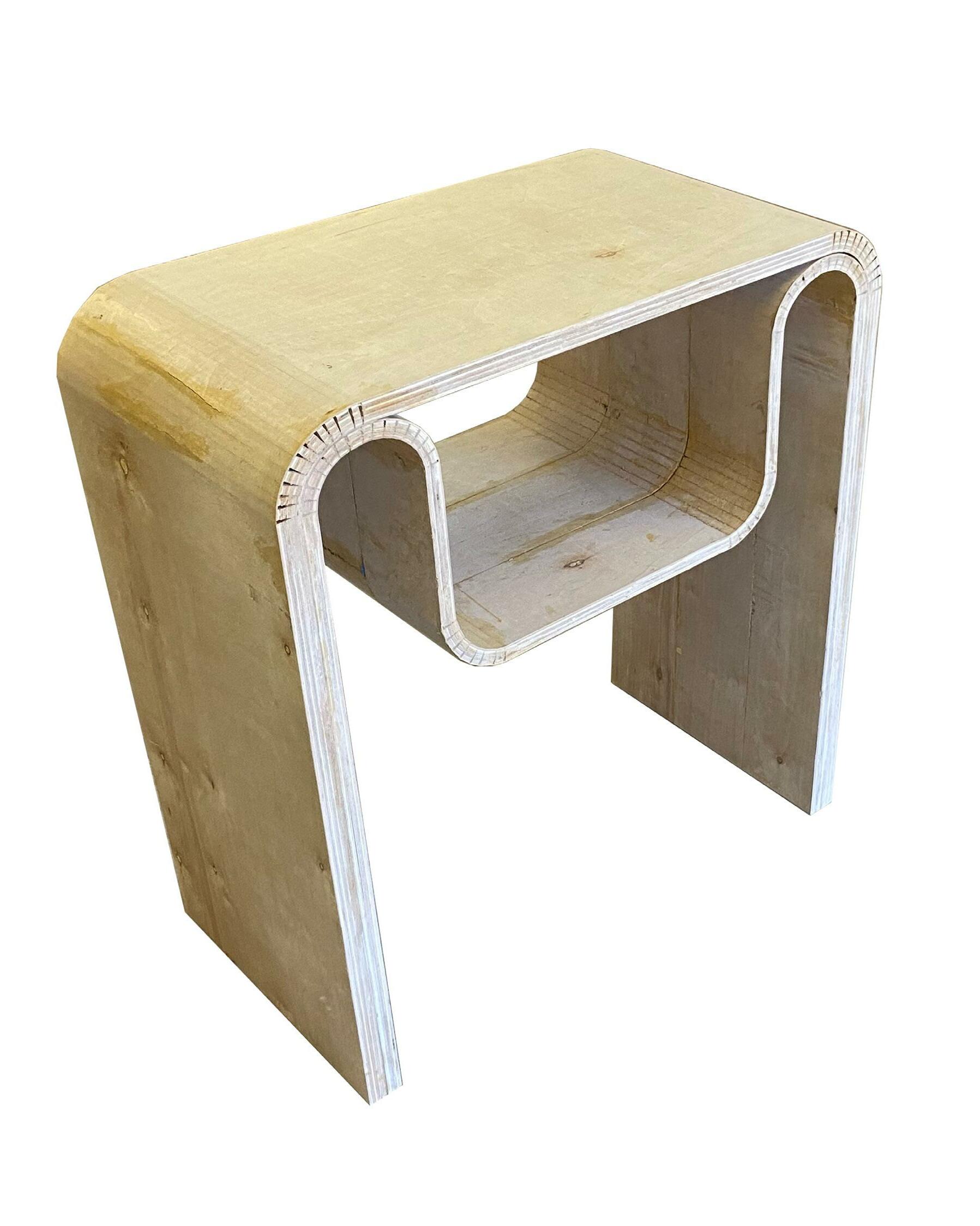 The primary design objective for this project was to creatively express the structural properties of plywood. We chose to curve the wood by scoring the edges of the table. To push the design and structural capabilities further, we incorporated two 180 degree curves to include a shelf within the nightstand, thus creating a more cohesive design