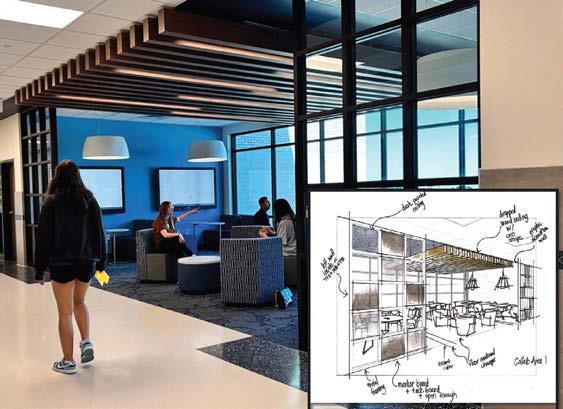 An example of a high performance school that earned four stars of distinction is West Plains High School in Canyon ISD, designed by Corgan Architects. This project does a remarkable job at drawing inspiration from its West Texas heritage, deeply grounding it in the community it serves. Integrating agriculture in their design features, the design team consulted with local farmers and ranchers to help highlight their heritage through accents in the carpet and ornamental metal railing. In addition, inspiration was drawn from Amarillo Art Deco architecture, which created an elegant yet familiar exterior for the high school. Active learning communities feature flexible furniture and enhanced technology, providing environments for students and staff to connect, gather and study.