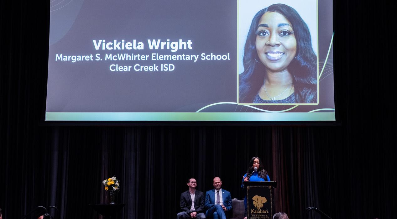 Vickie Wright is the Texas State Teacher of the Year and a fifth-grade ELA teacher in Clear Creek ISD. She champions teacher mentorship, literacy access, and community partnerships across the state.