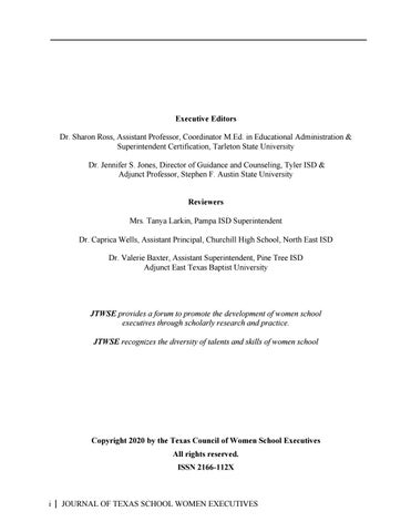 Copyright 2020 by the Texas Council of Women School Executives All rights reserved. ISSN 2166-112X